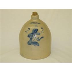 2 GAL. JUG W/ FLORAL DECORATION, WHITTEMORE HAVANA NY - CHIP TOP LIP