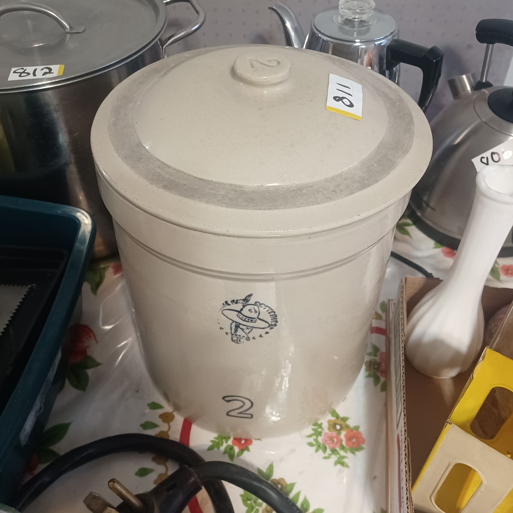 2 GALLON CROCK POT C/W LID EXCELLENT CONDITION NO CRACKS