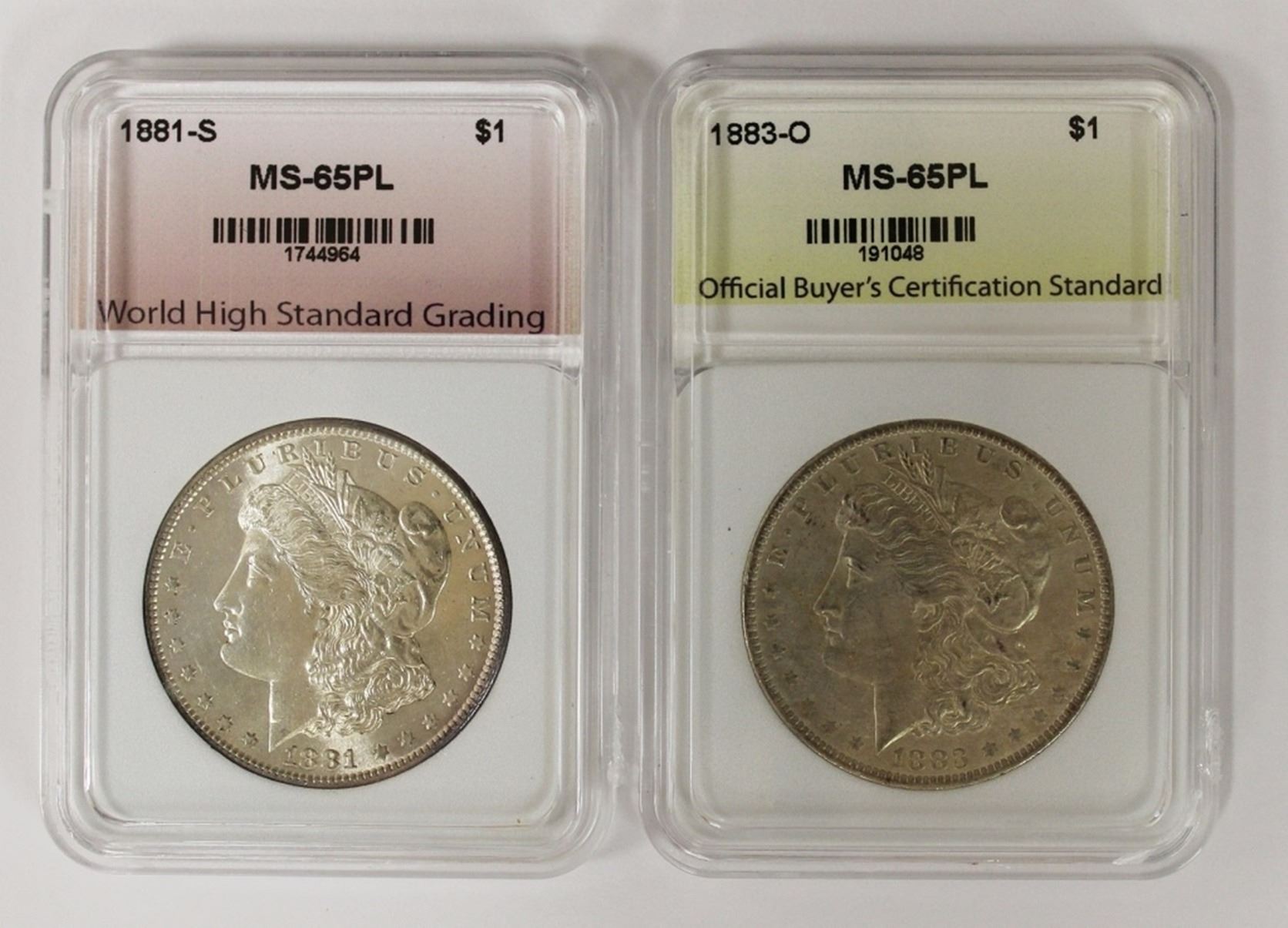 1881-S WHSG GRADED AND 1883-O OBCS GRADED. ESTIMATE: $300-$400