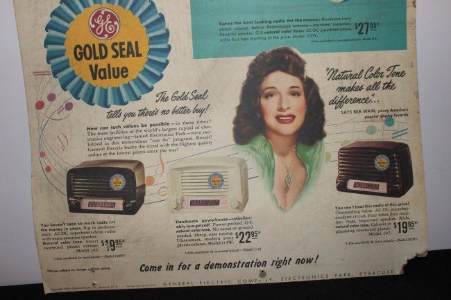 2 GENERAL ELECTRIC 1948 RADIO ADVERTISING - 2 FOR 1 MONEY