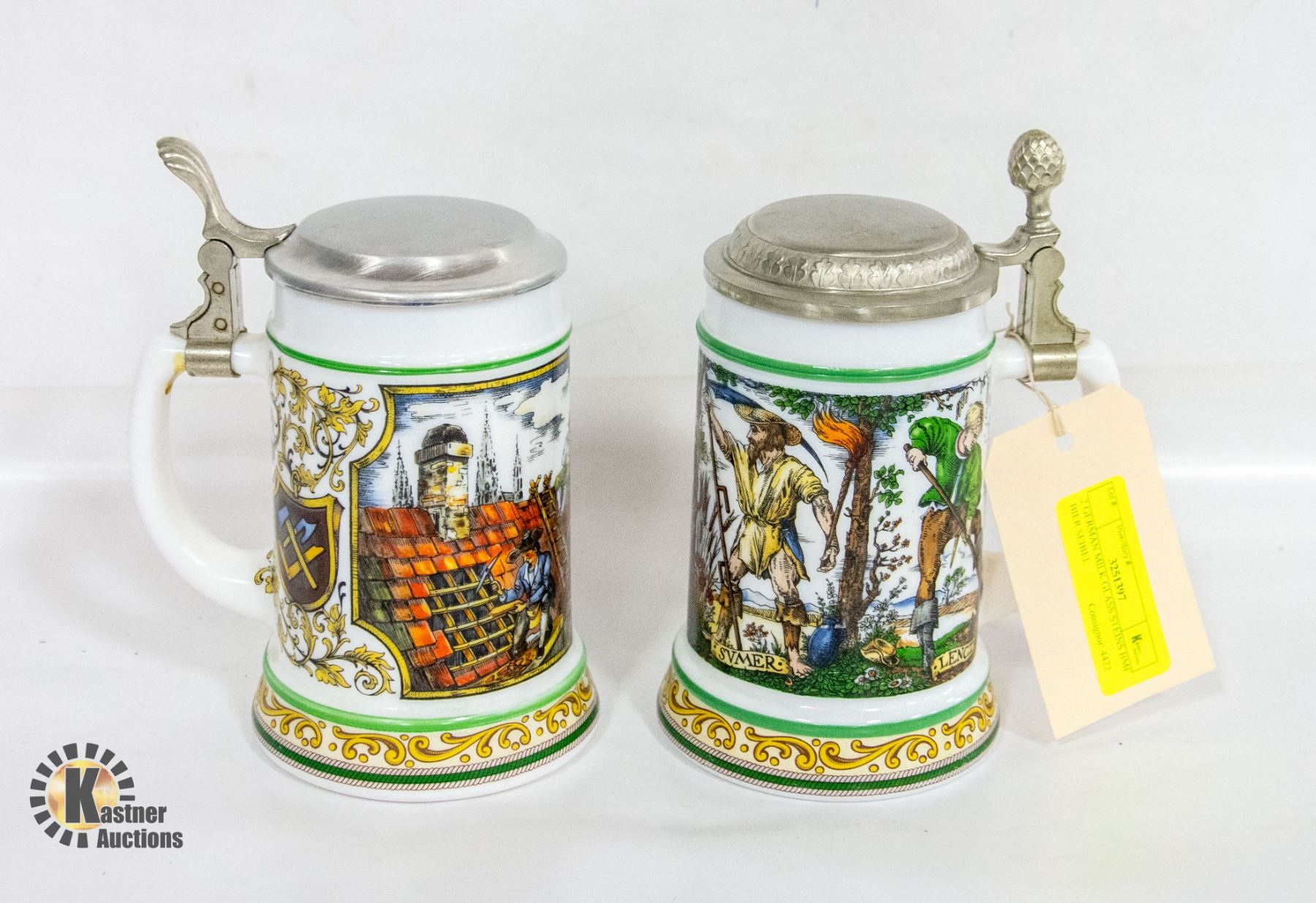 2 GERMAN MILK GLASS STEINS BMF BIER SEIBEL
