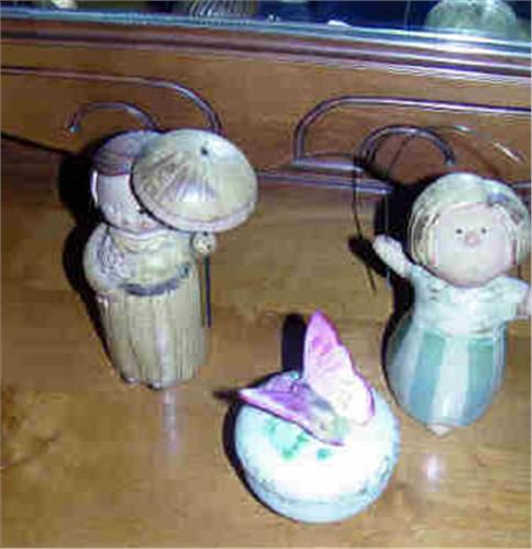 2 GIRL FIGURINES & PORCELAIN BOX W/BUTTERFLY