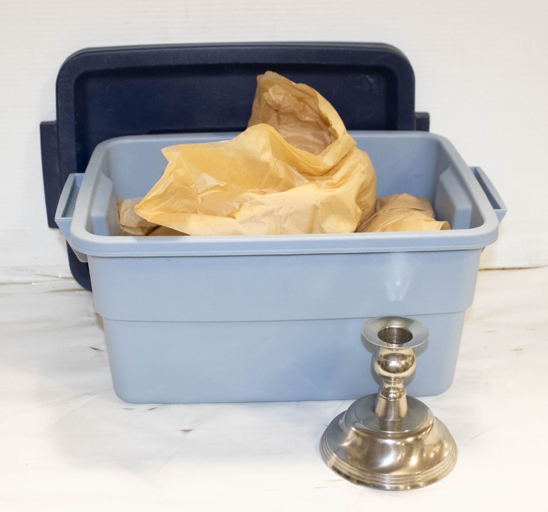 2 GLASS & SILVER PLATED CANDLESTICKS