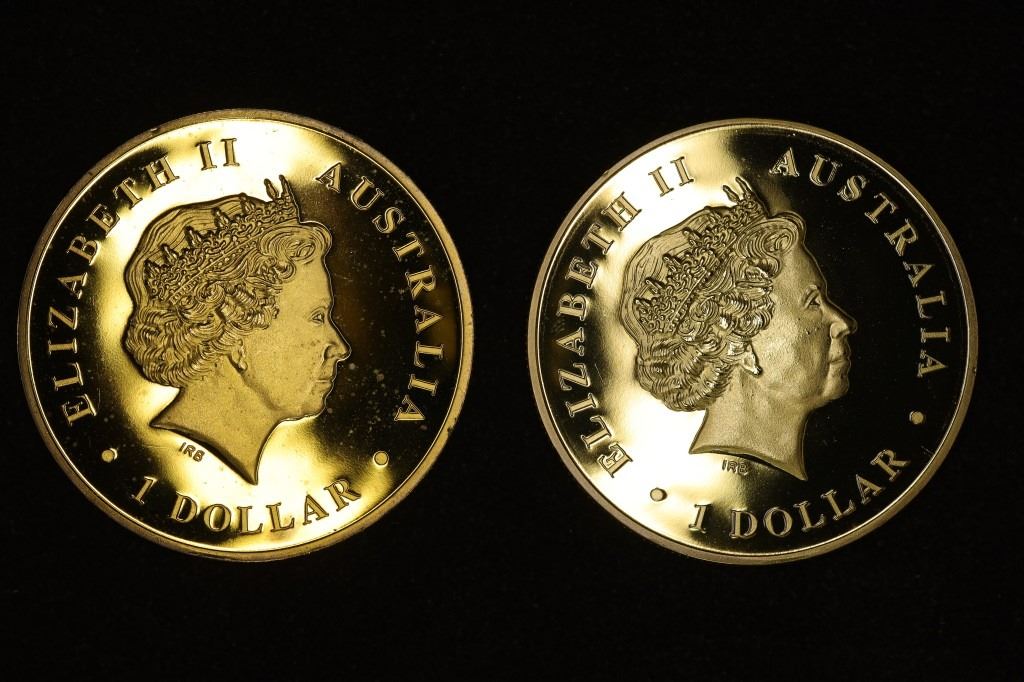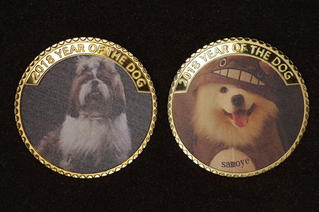$1 ROUNDS COLORIZED ON THE REVERSE SHIH-TZU AND SAMOYE, IN HARD PLASTIC CAPSULE