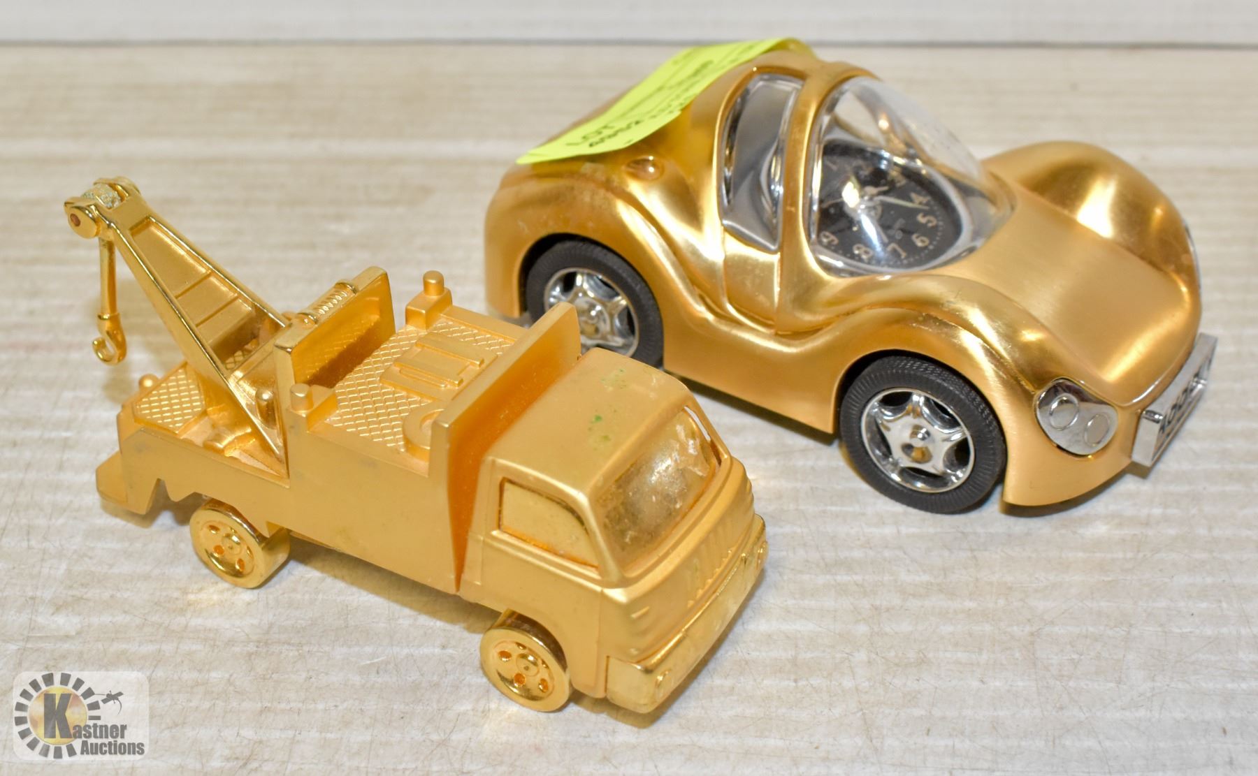 2 GOLD TONE CAR & TRUCK DESK CLOCKS