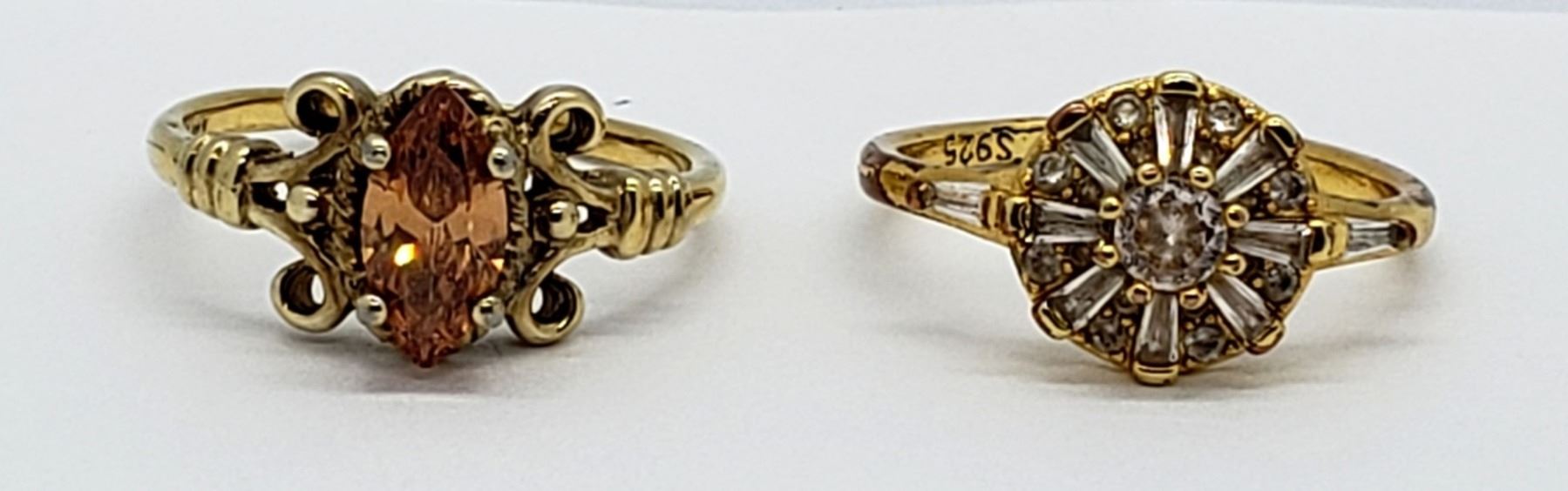 CLEAR CENTER STONES. BOTH SIZE 8. TOTAL 3.3 DWT