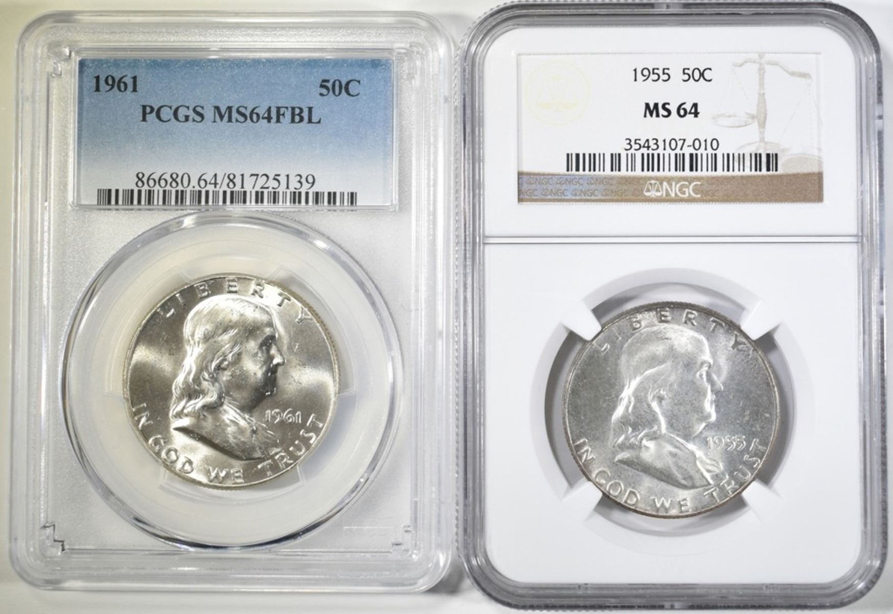 1955 NGC MS-64 & 1961 PCGS MS-64 FBL. ESTIMATE $150 - $200.