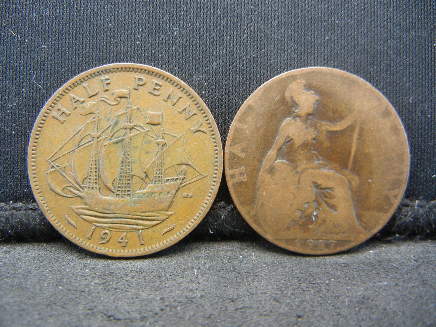 (2) GREAT BRITAIN 1917 1/2 PENNY, 1941 1/2 PENNY)
