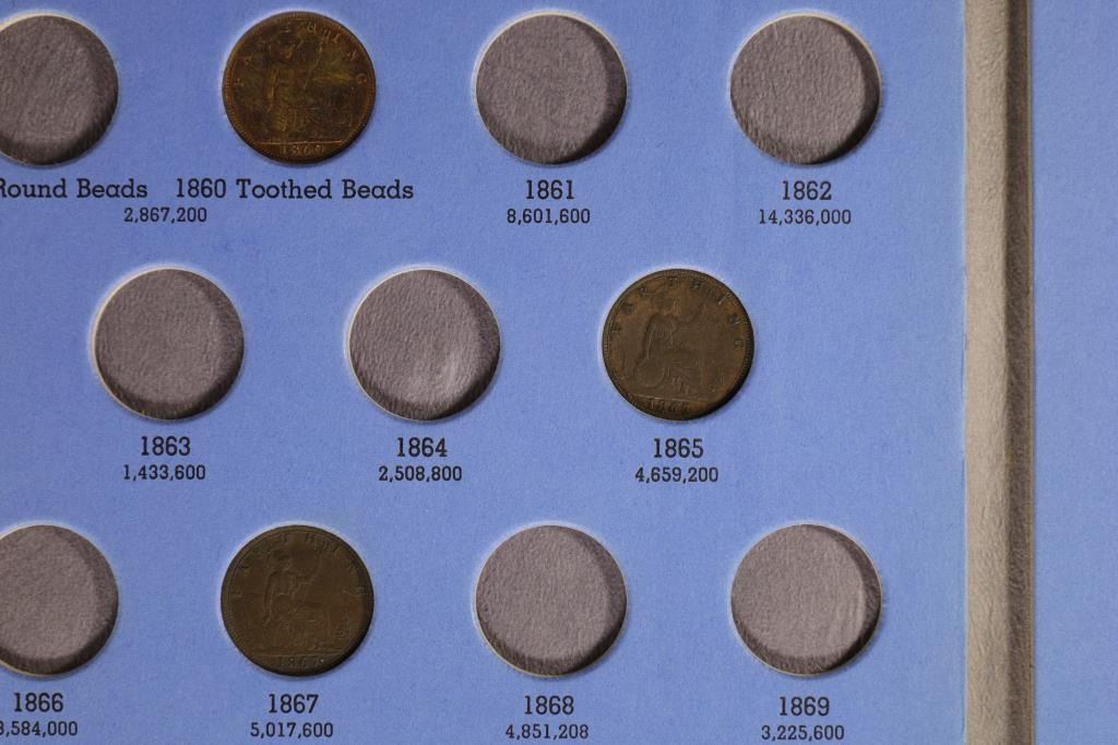1860-1901 (INCLUDES 1860, 1865, 1867 & 1895 FARTHING) AND HALF PENNIES 1902-1936 (INCLUDES 16 COINS, 1902-1936) NOT COMPLETE COLLECTIONS