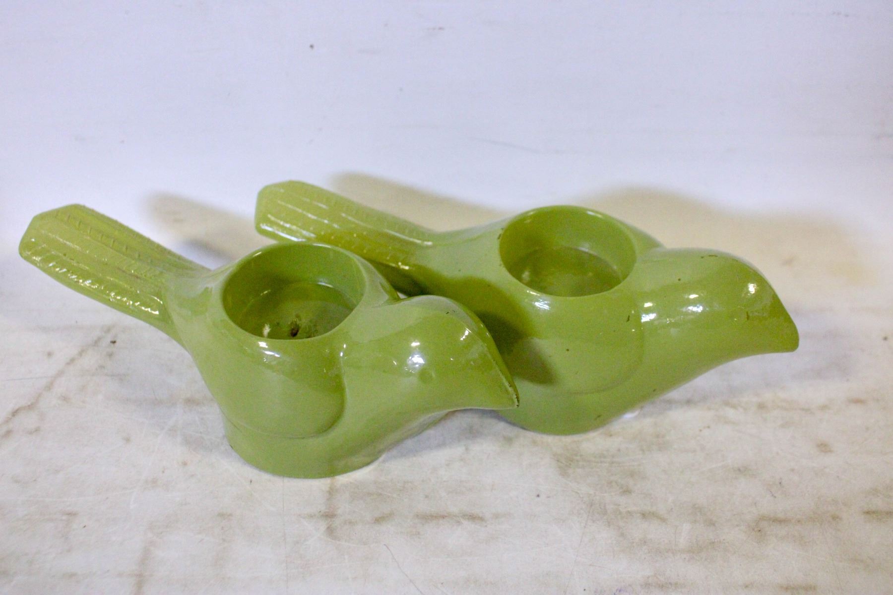 2 GREEN MATCHING TEA LIGHT CANDLE HOLDERS