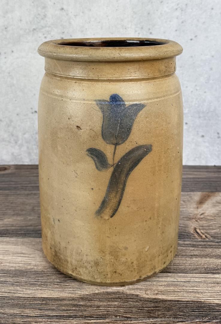 Blue slip decoration of a Tulip. 12" tall, 8" diameter.