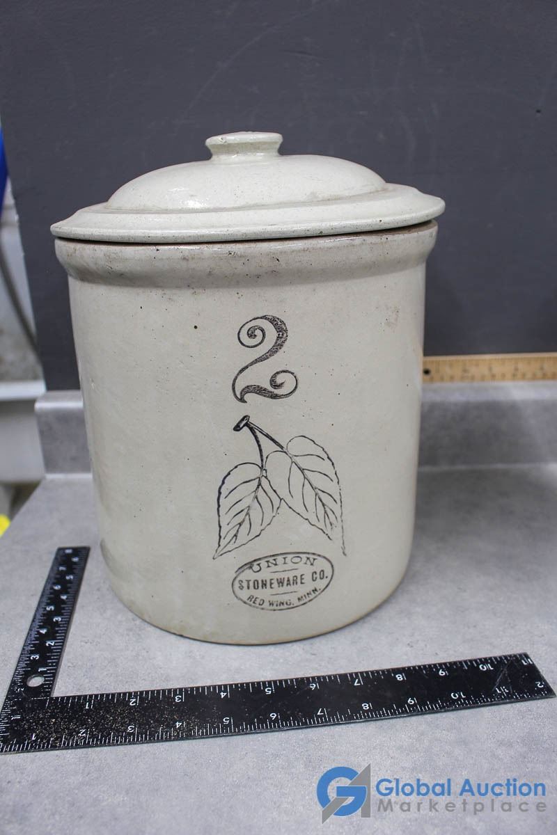#2 Gallon Union Red Wing Stoneware Crock w/Lid
