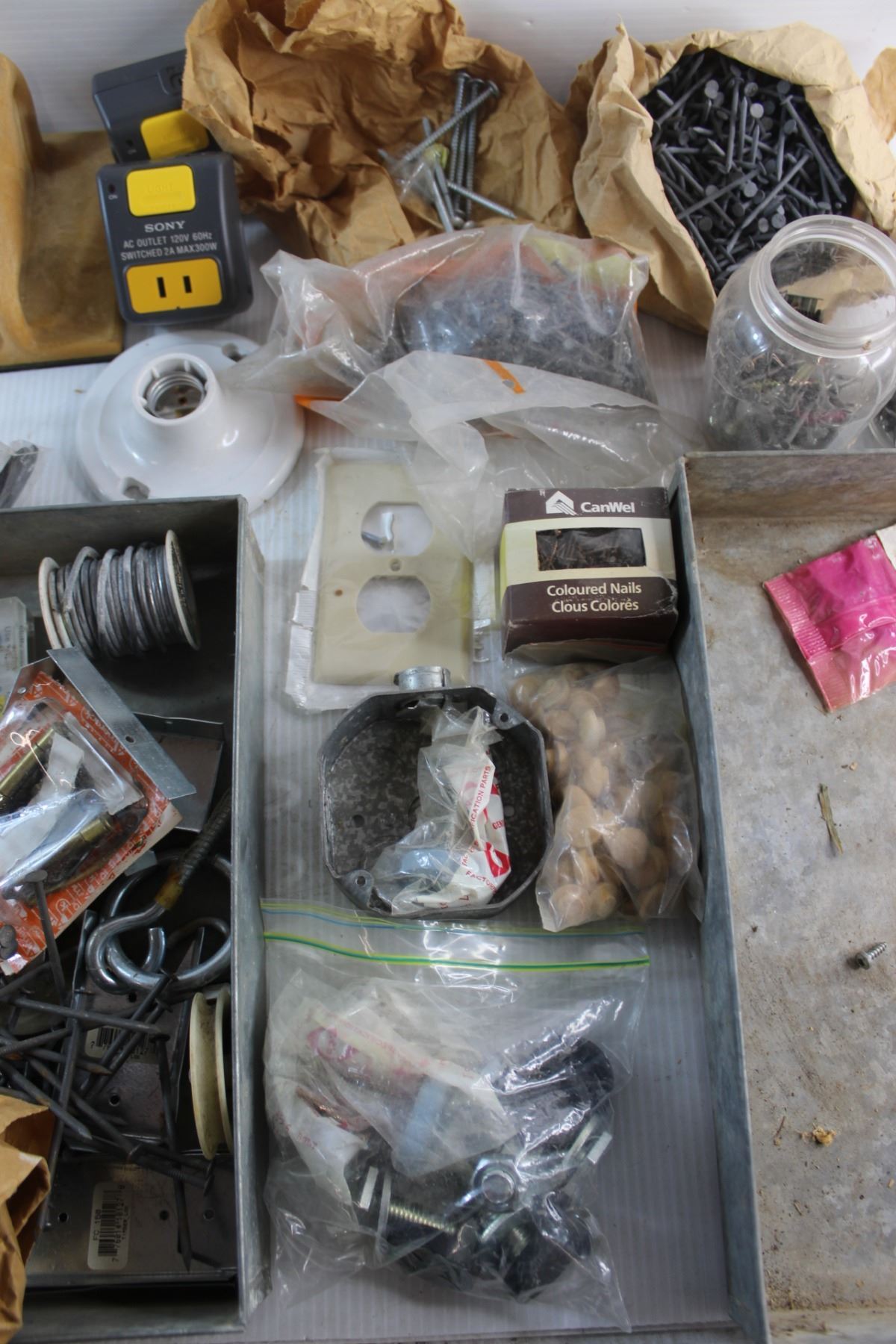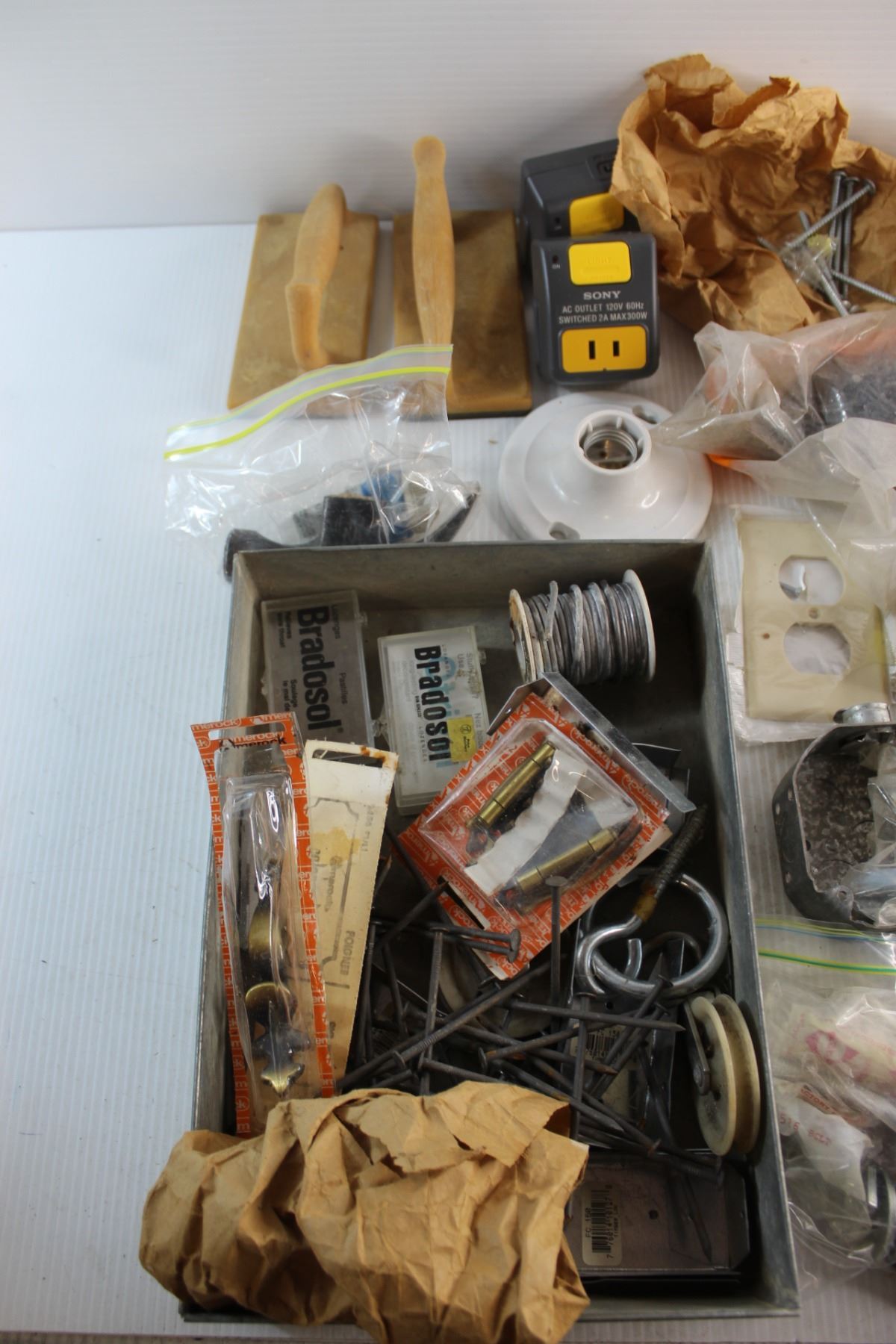 (2) Galvanized Trays, (2) Sony AC Outlet 120V, Hammer Head and Assorted Hardware
