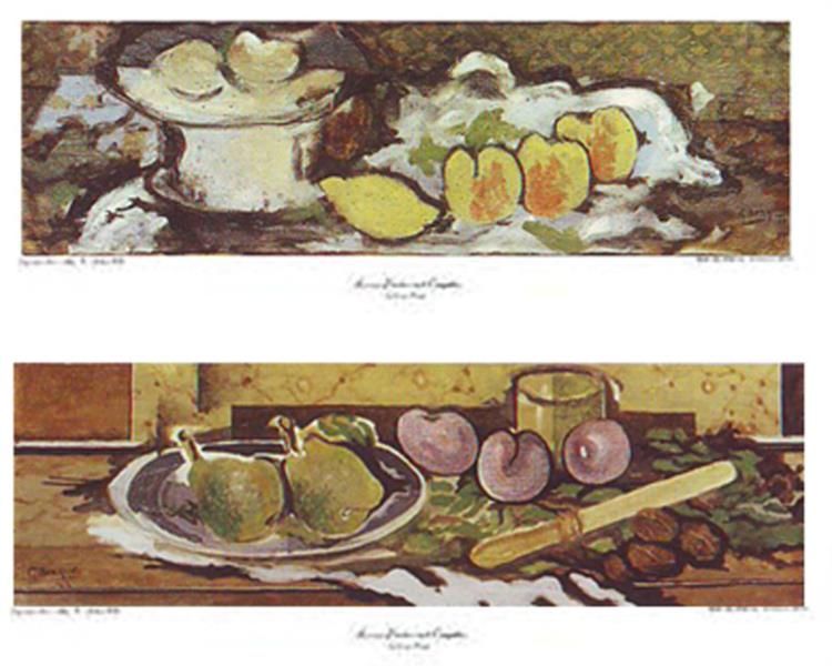 2 Still Life Art Prints * * * Artist: Georges Braque Title: Lemons, Peaches and CompotierMedium: Print on paperPaper size: 13 x 32 inches * * Artist: Georges BraqueTitle: Plums, Pears, Nuts and KnifeMedium: Print on paperPaper size: 13 x 32 inches * * Condition: Excellent *