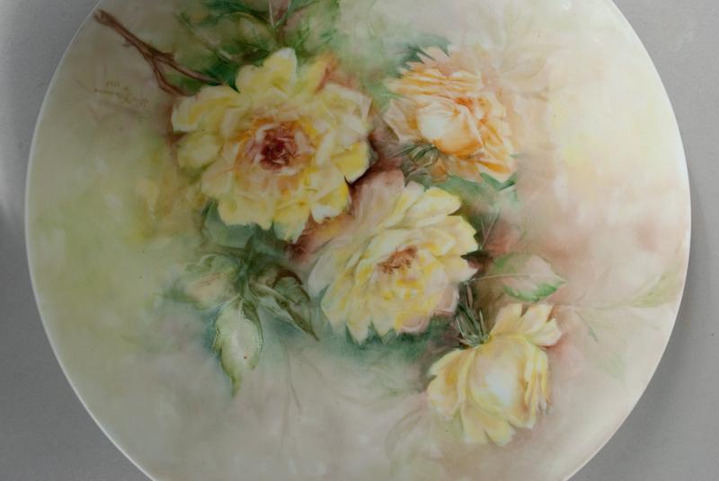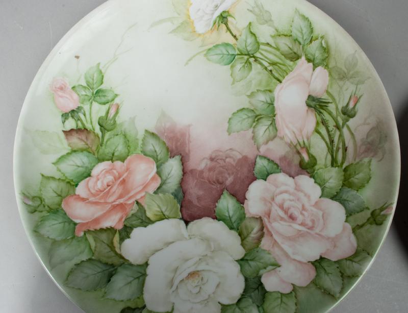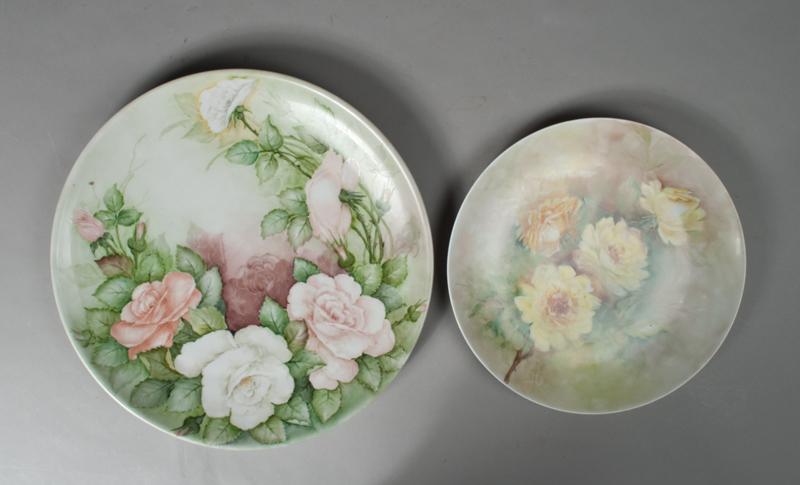 Includes a large Hutschenreuther Hohenberg German plate painted with white and pink roses, 12.75" Dia. Together with a Holiday China German plate painted with yellow roses, 10" Dia. Both in very good condition.