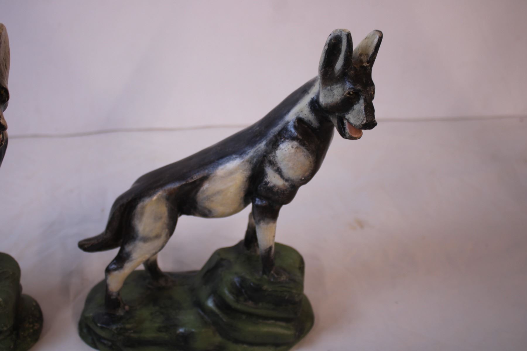2 German Shepard Dog Figurines from 1945(chalkware) some repairs made