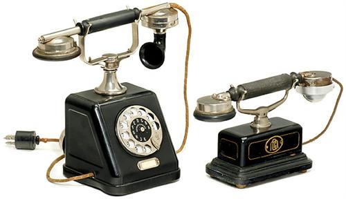 2 German Table Telephones 1) "ZB SA 19" by "Siemens & Halske", complete. - And: 2) Manufacturer "Mix & Genest", metal case, handset partly completed.<Br>