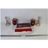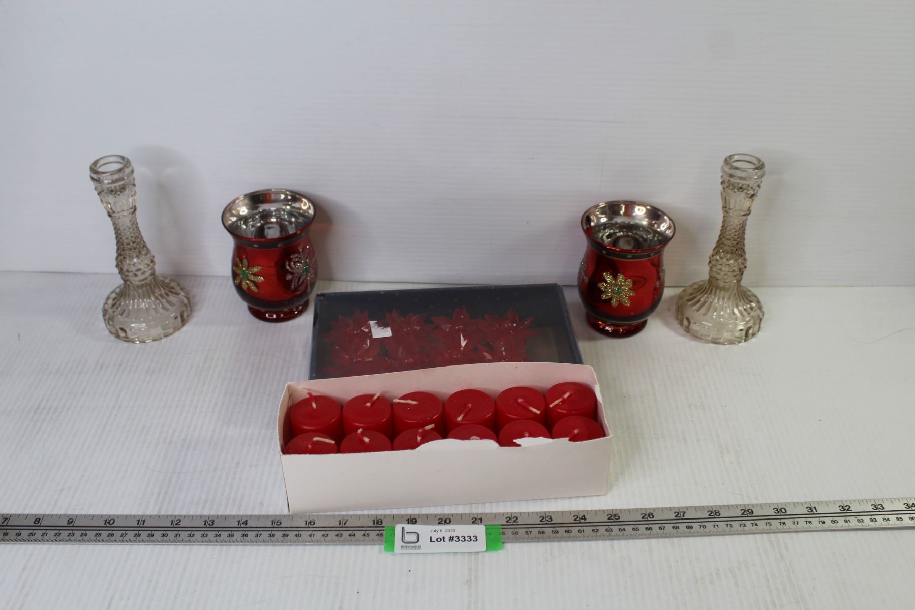 (2) Glass Candle Sticks - (2) Ornate Candleholders - Candles - Tealight Decor