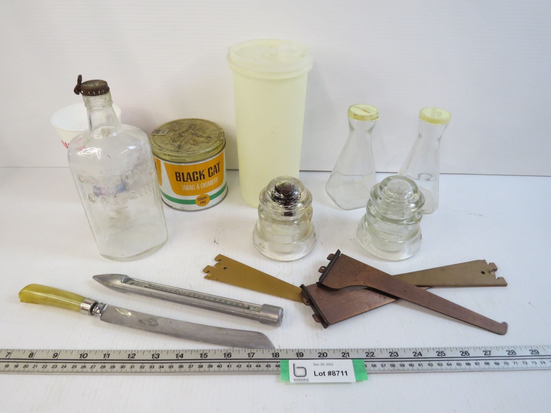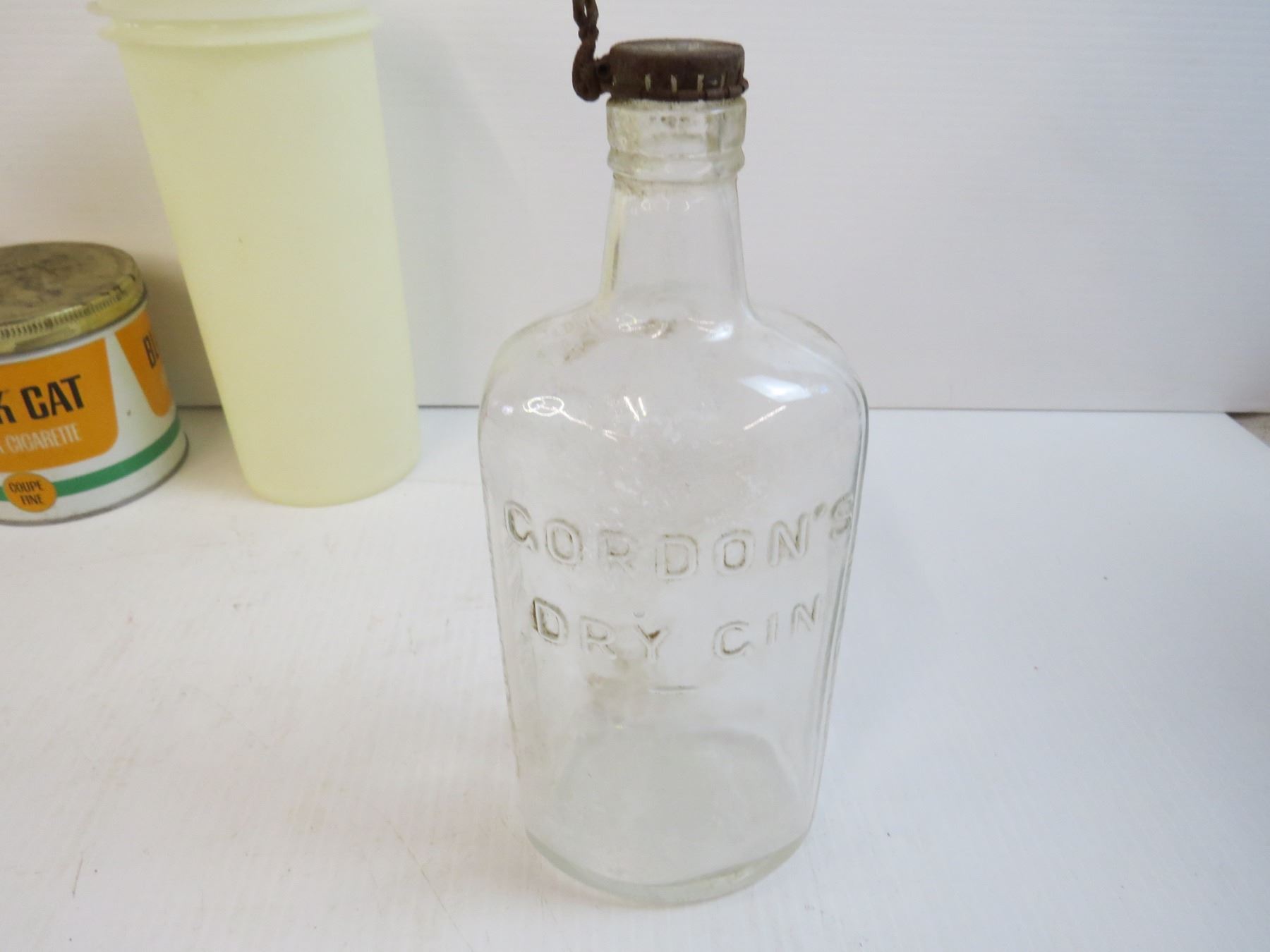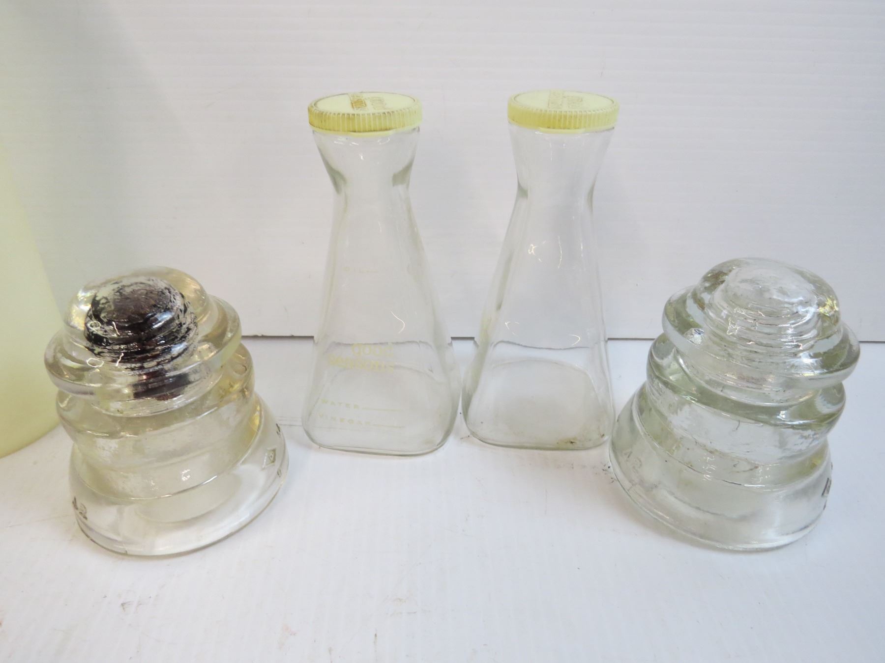 (2) Glass Insulators - Good Seasoning Jars - Gordon's Dry Gin - Mis Items