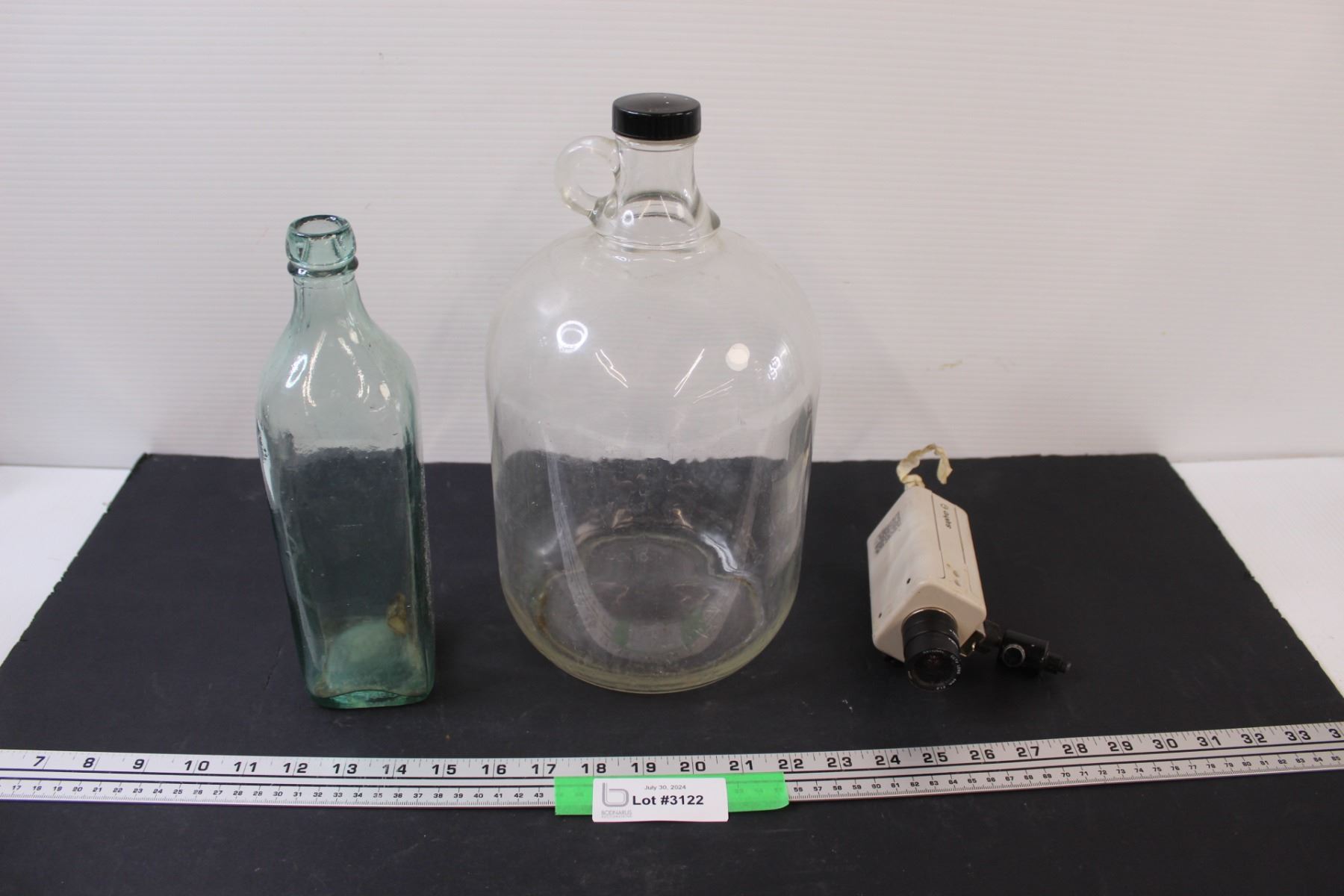(2) Glass Jugs-12" & 10" & Sanyo Security Camera (as is)