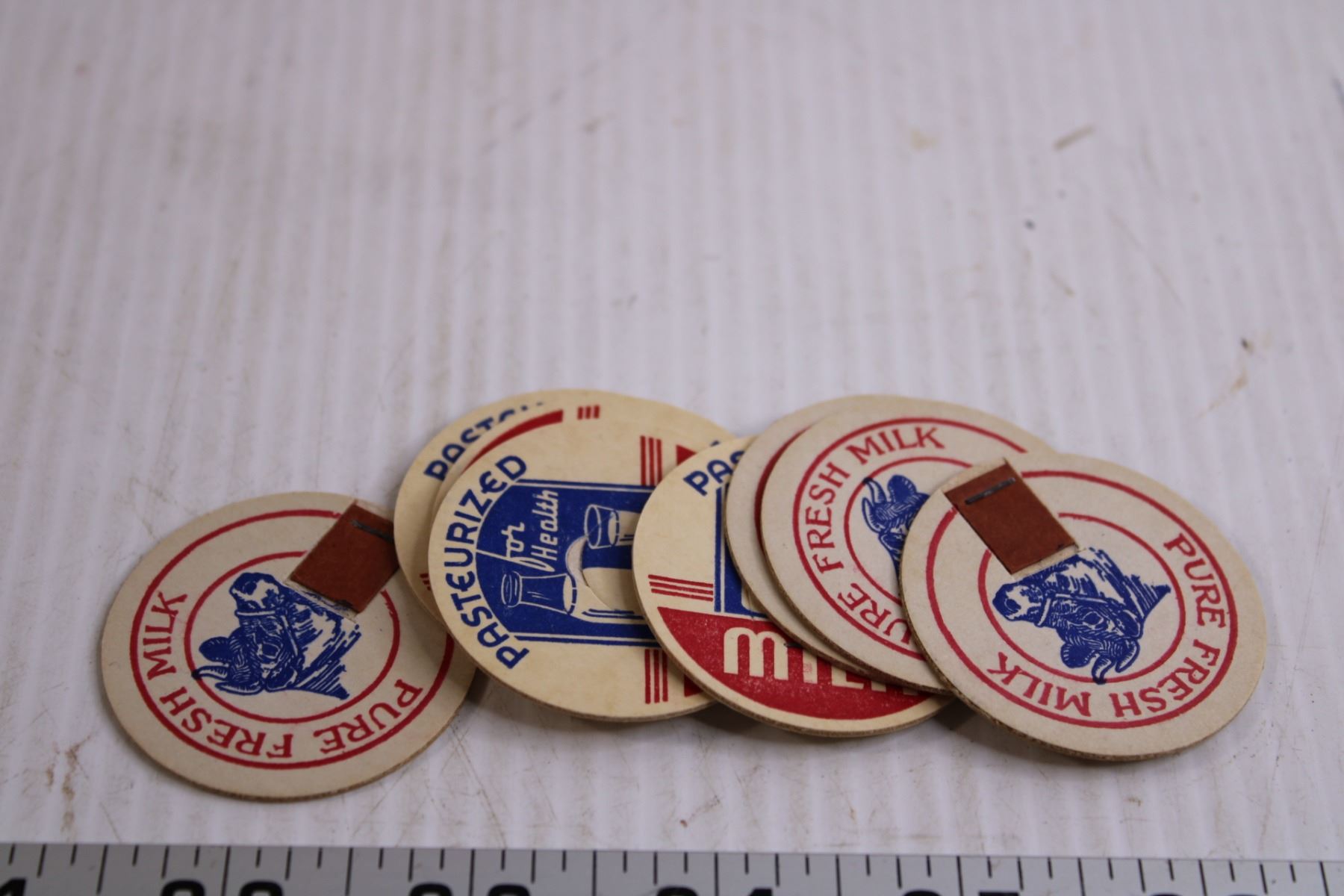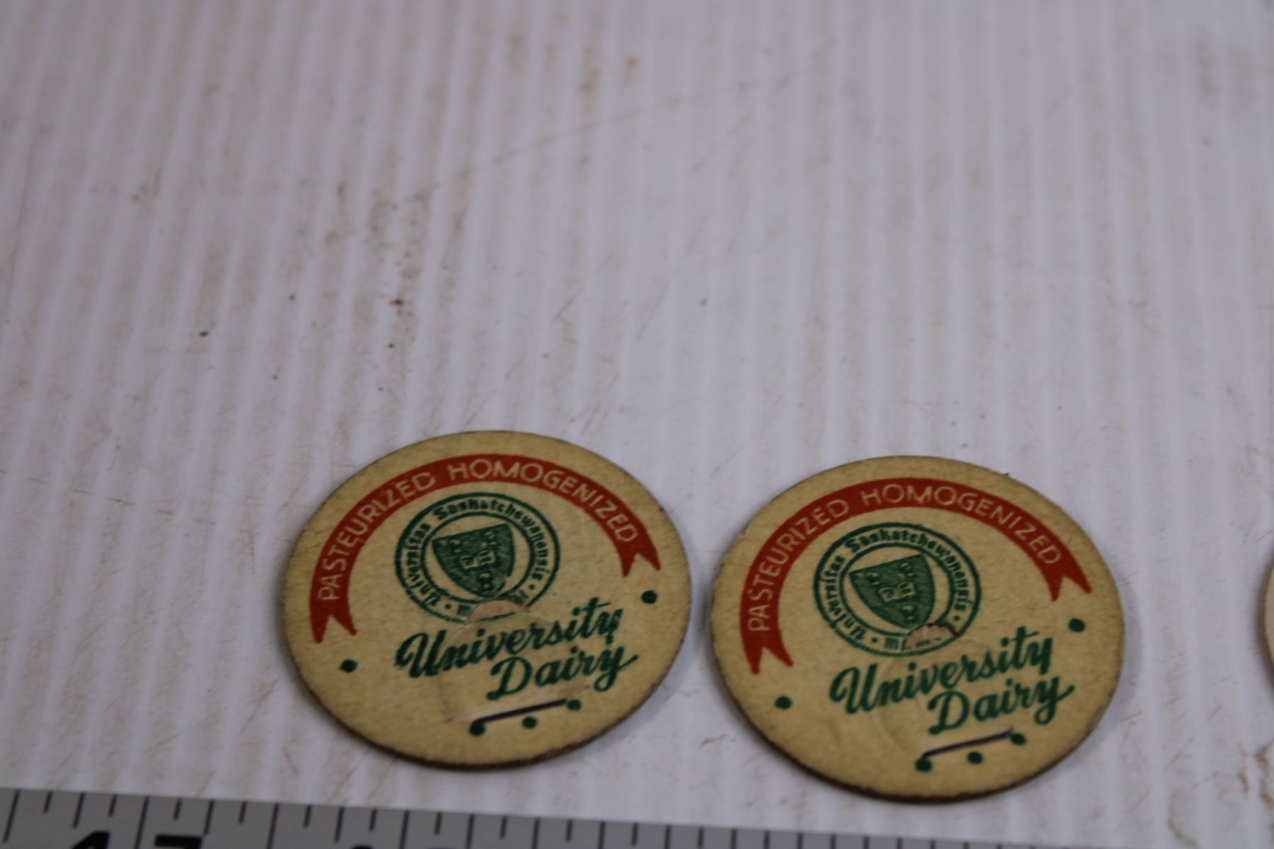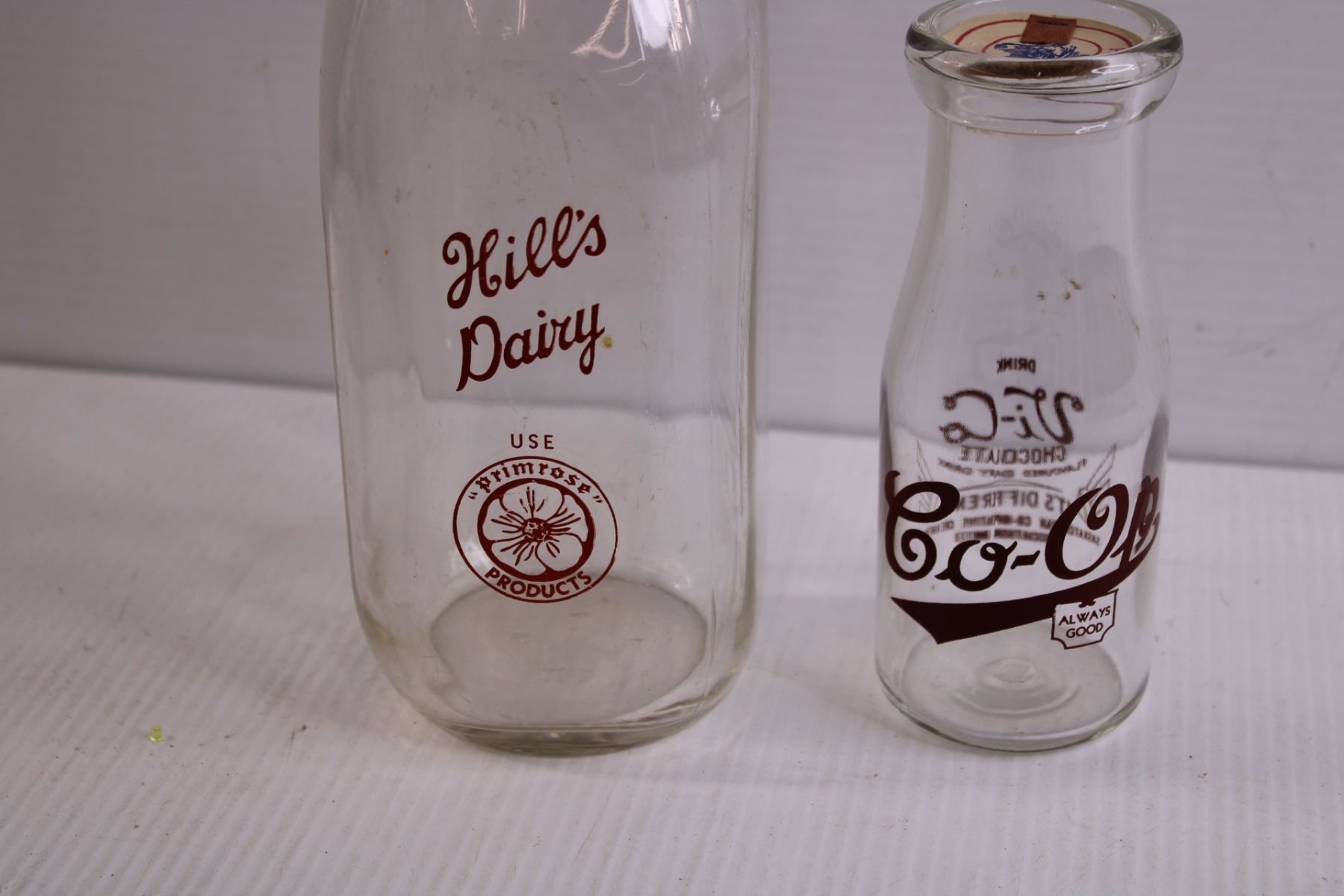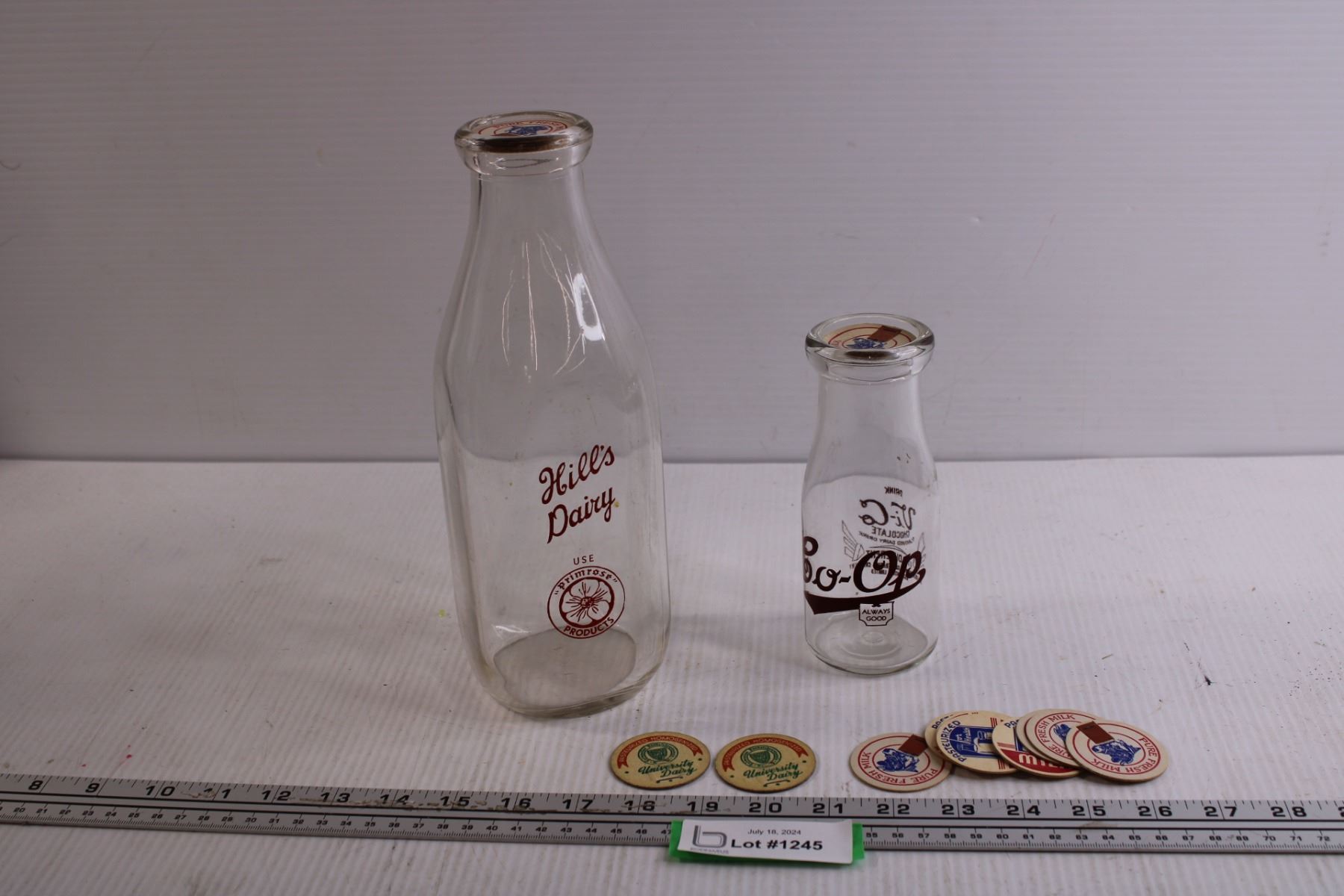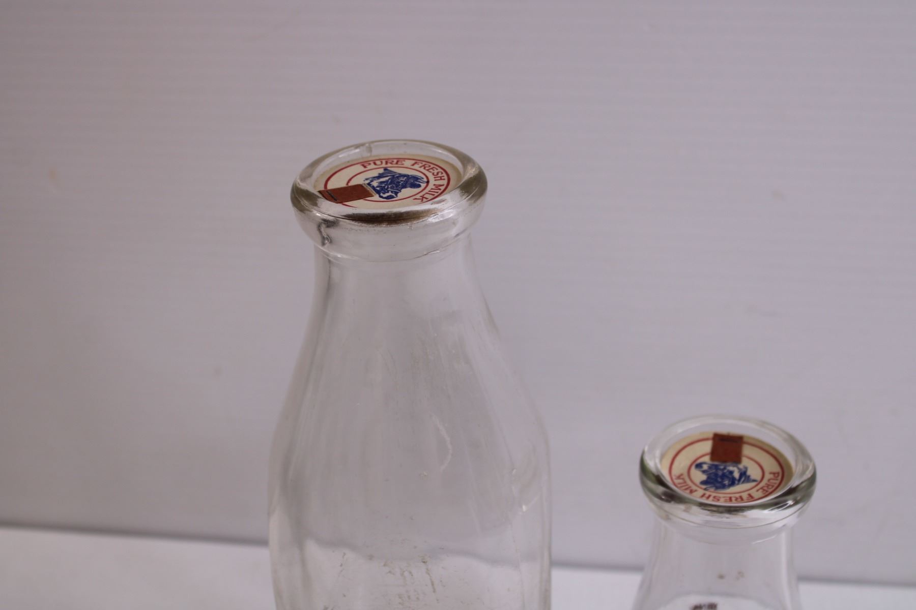 (2) Glass Milk Bottles w/ (12) Caps - (2) from University of Saskatchewan Dairy