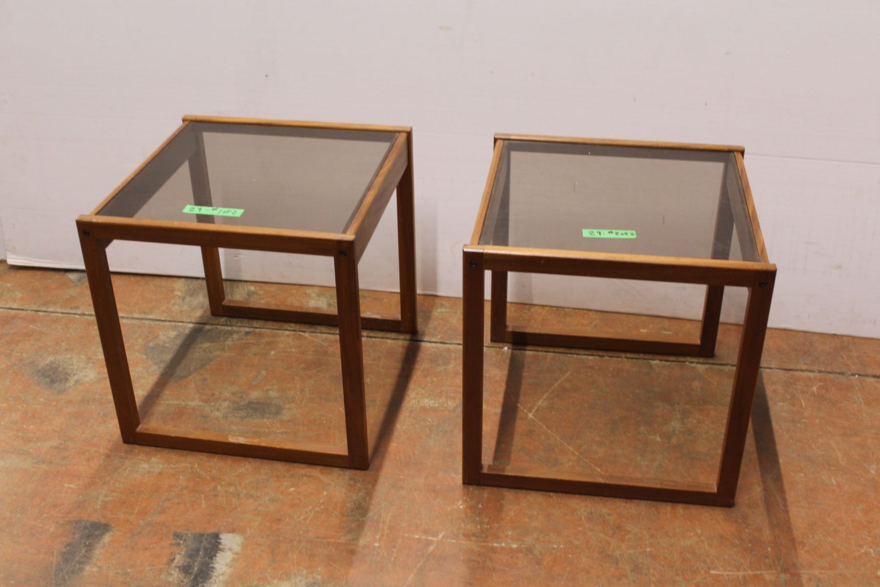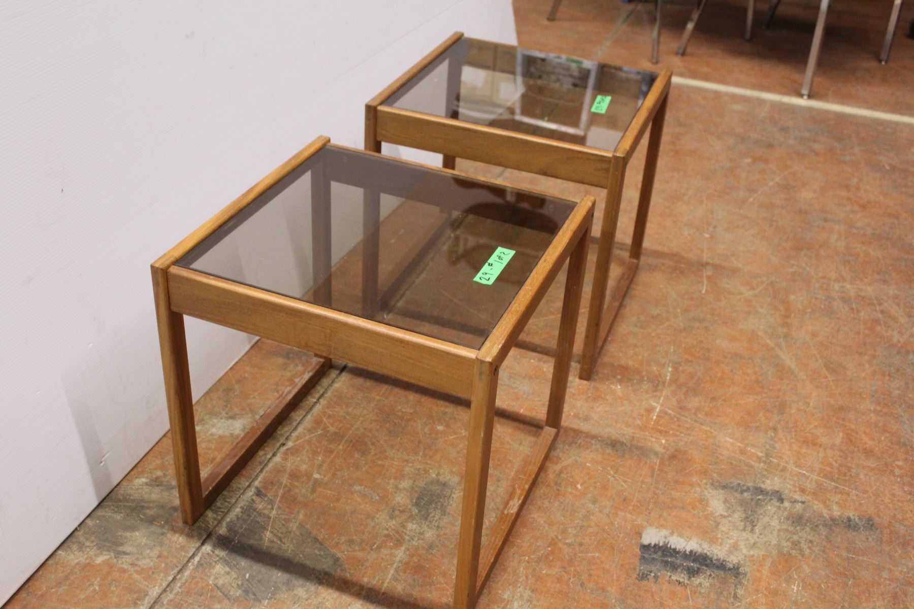 * (2) Glass Top End Tables - Each 18" x 18" x 18"