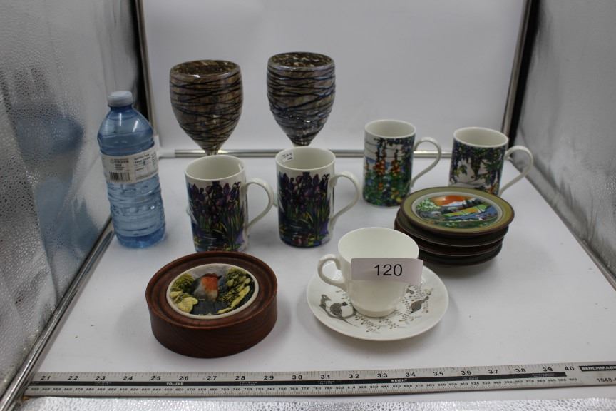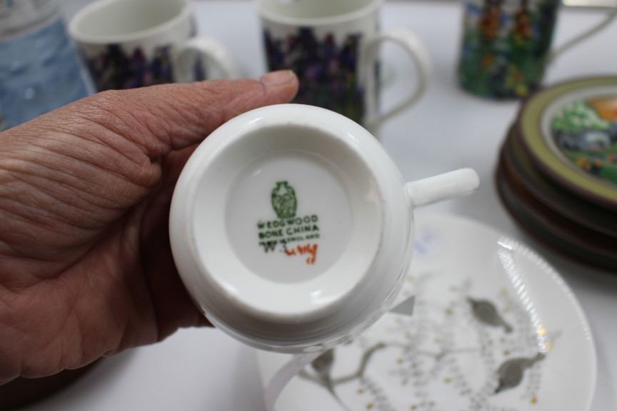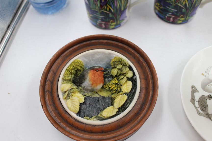 4 Schramberg Wall Art, Wedgewood Cup and Saucer, Bird, Framed Ceramic Wall art