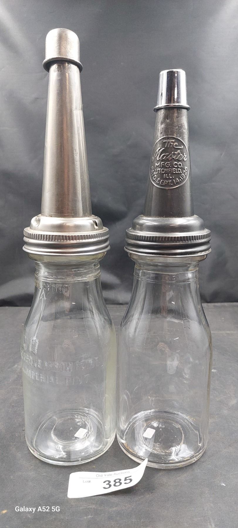2 Glass pint oil bottles