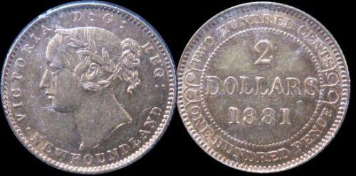 $2 Gold 1881 ICCS AU50. A pleasant example with nice lustre