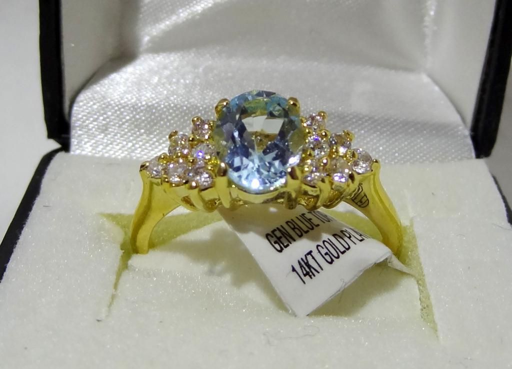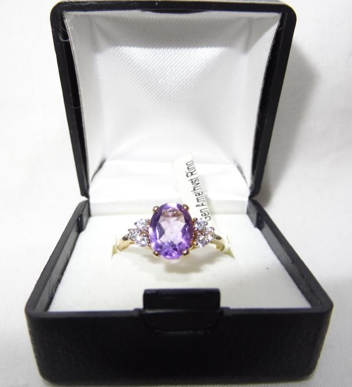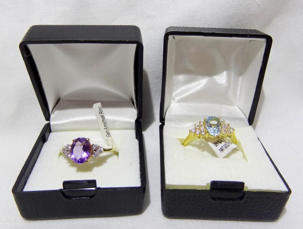 2 Gold Plated Amethyst & Topaz Rings w/ CZ's