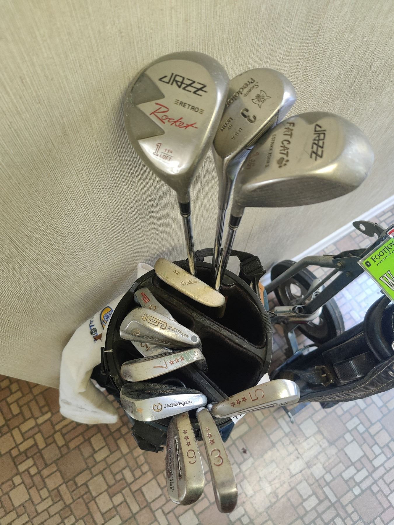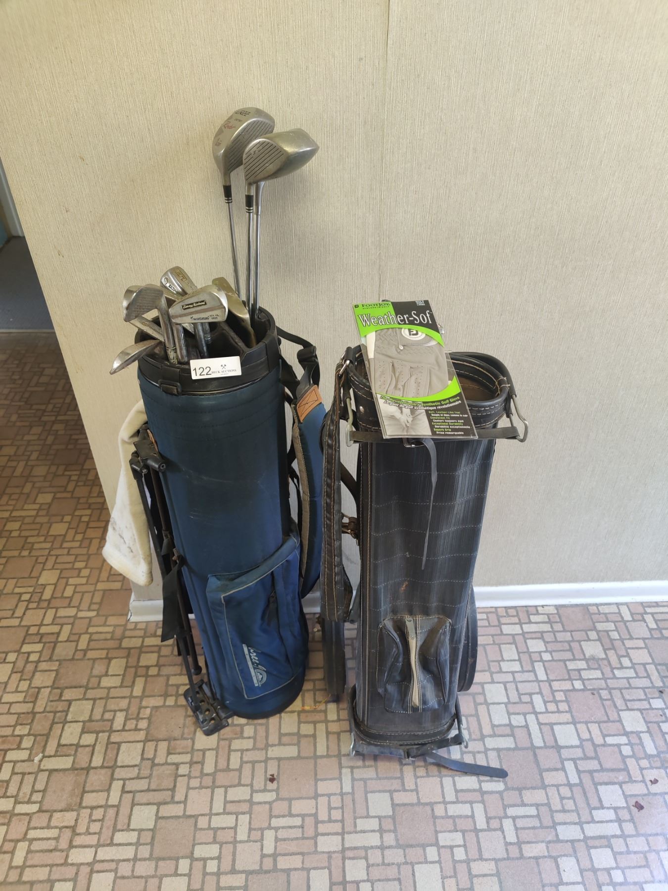 2 Golf Bags, Assorted Golf Clubs and Golfing Gloves