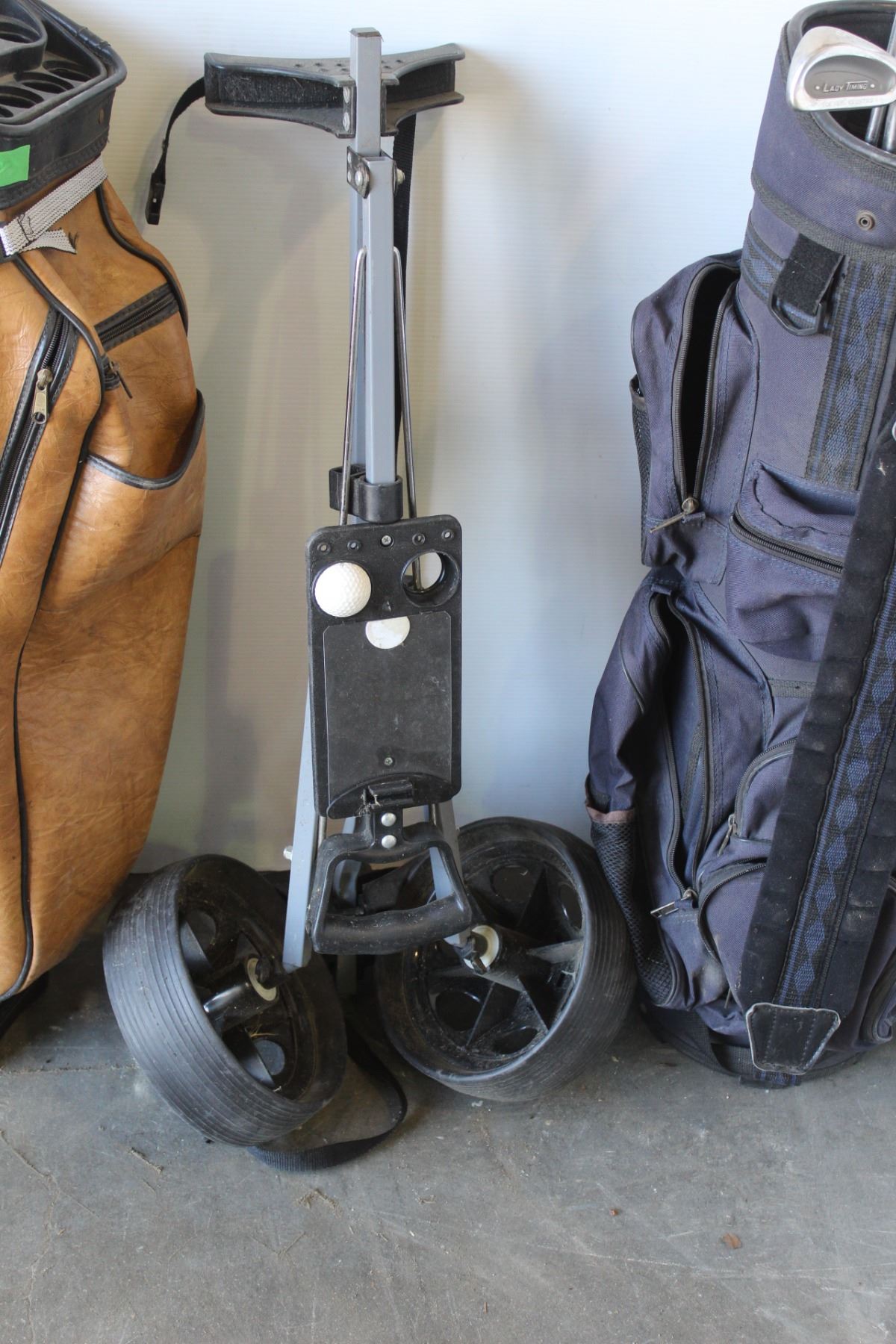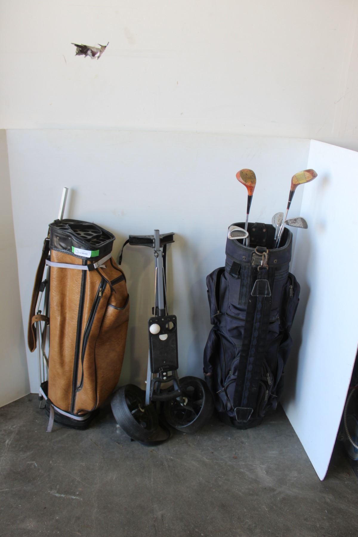 ** (2) Golf Bags w/ Assorted Clubs w/Wheeler