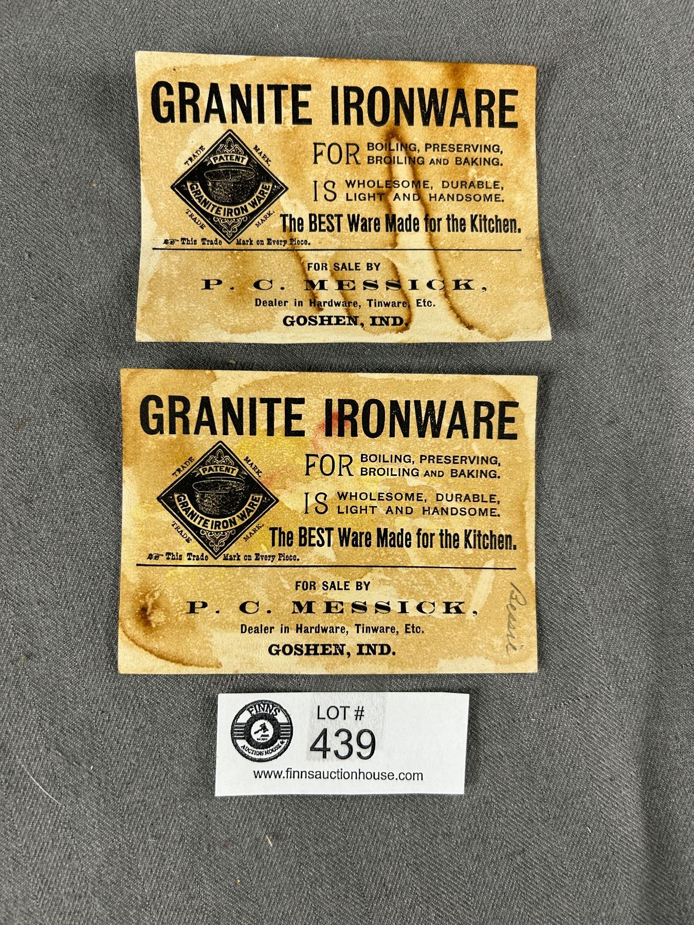 2 Granite Ironware Trade Cards, Circa 1890-1900