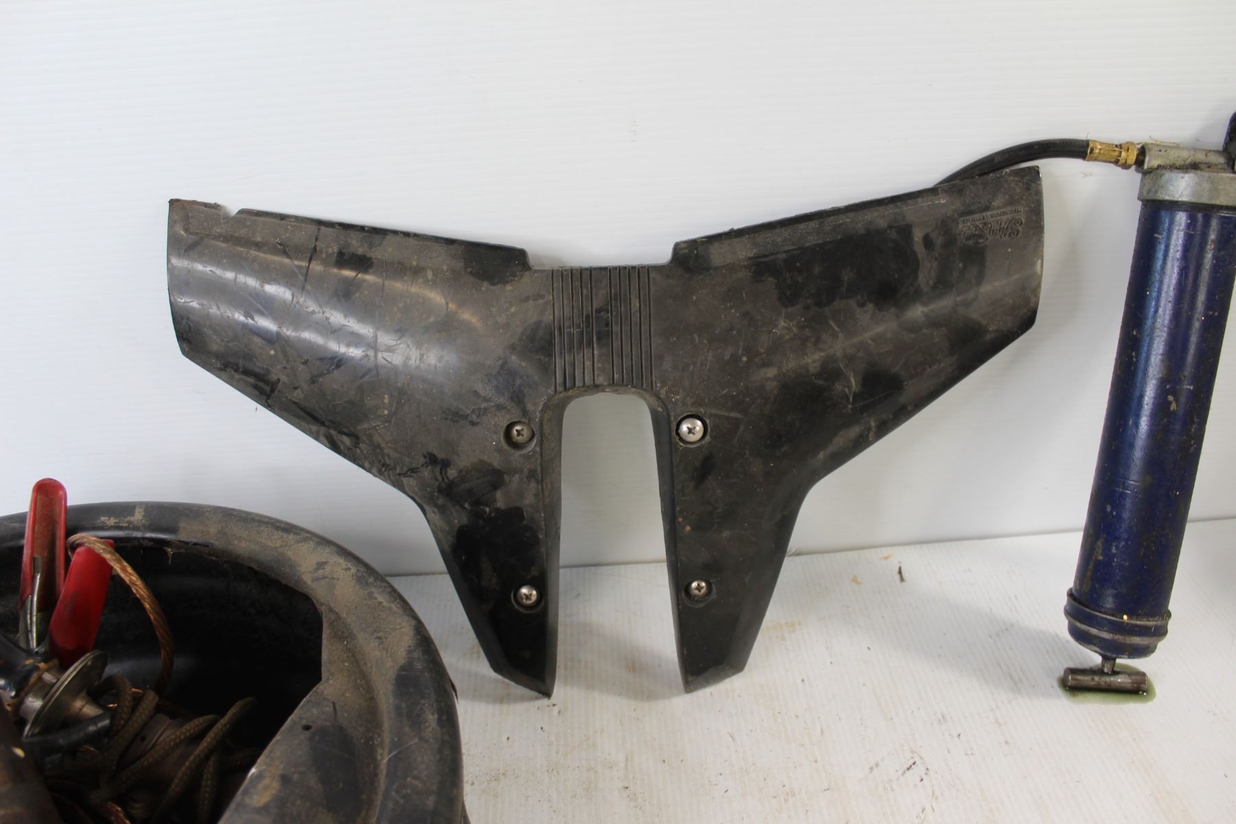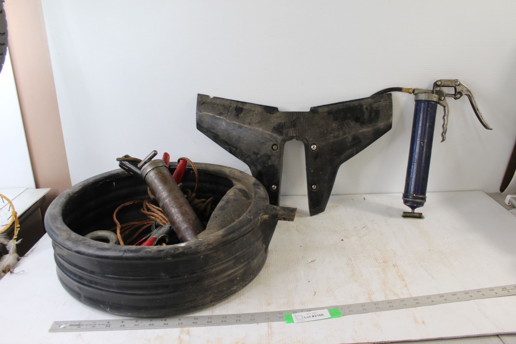 (2) Grease Guns, Oil Pan, Boat Part, Assorted Automotive Tools