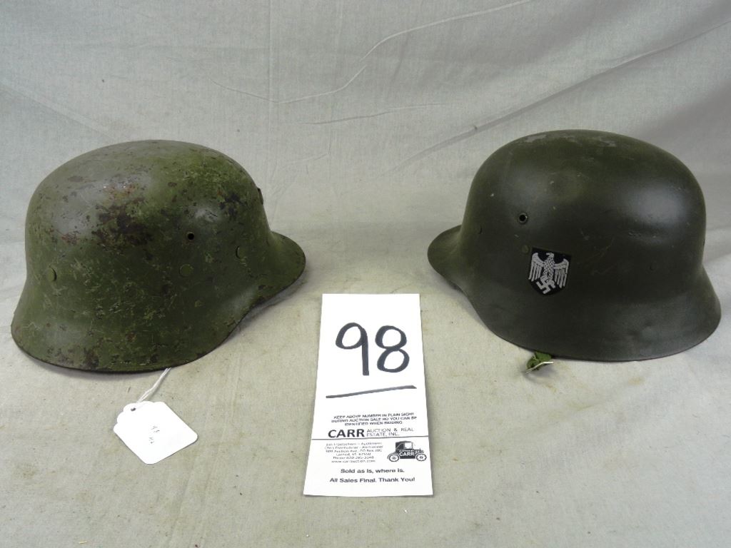 (2) Green WWII Helmets