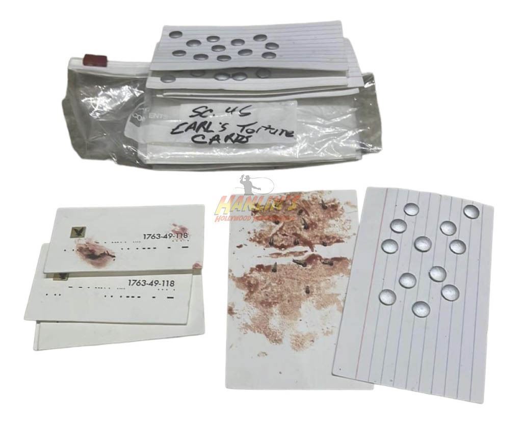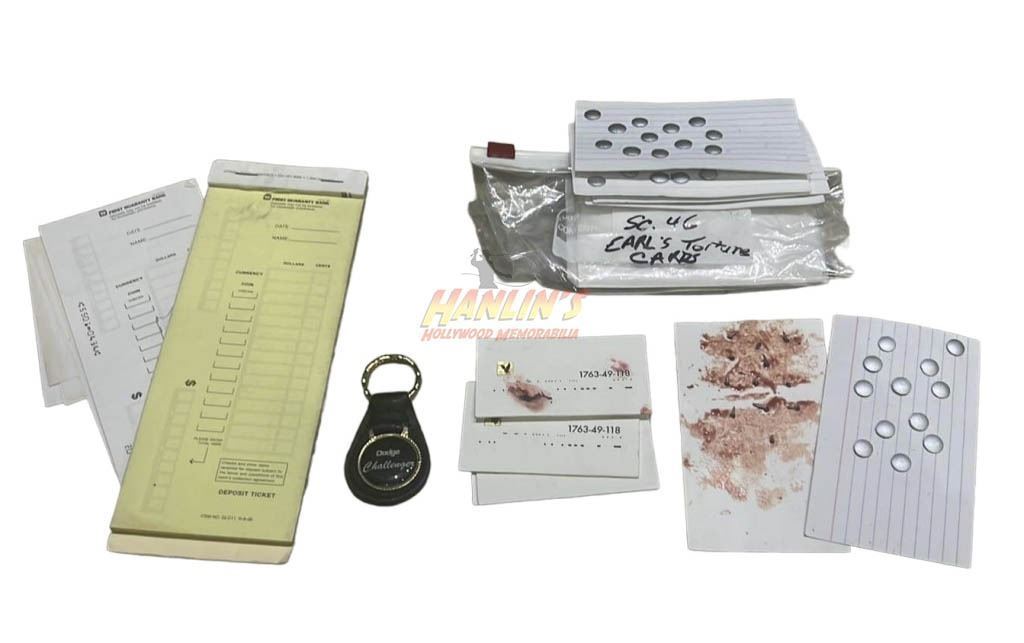 Consists of torture cards, business cards, keychain and bank deposit slips. Everything comes in a production baggie named earl.