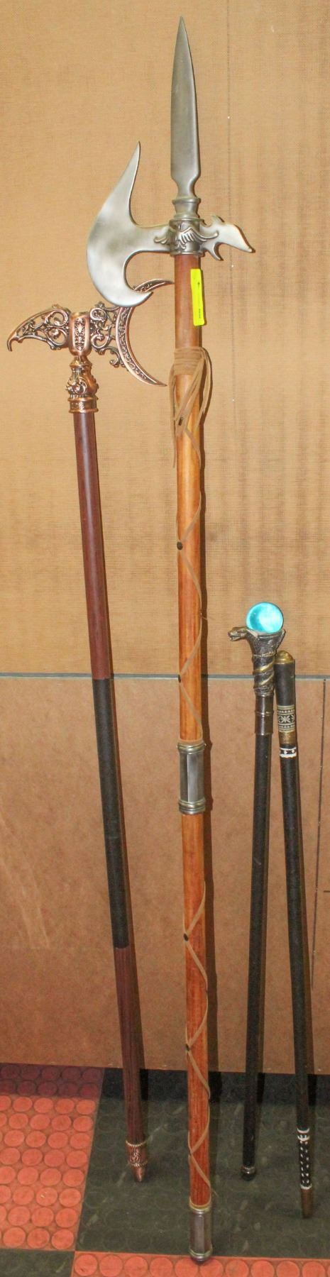 2 HALBERDS WITH 2 CANES BROKEN PIECES ON ALL