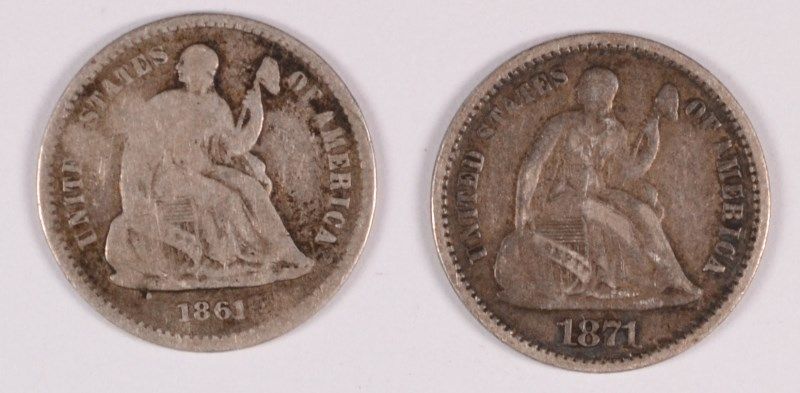 ( 2 ) HALF DIMES, 1861 VG DING, 1871 VF+