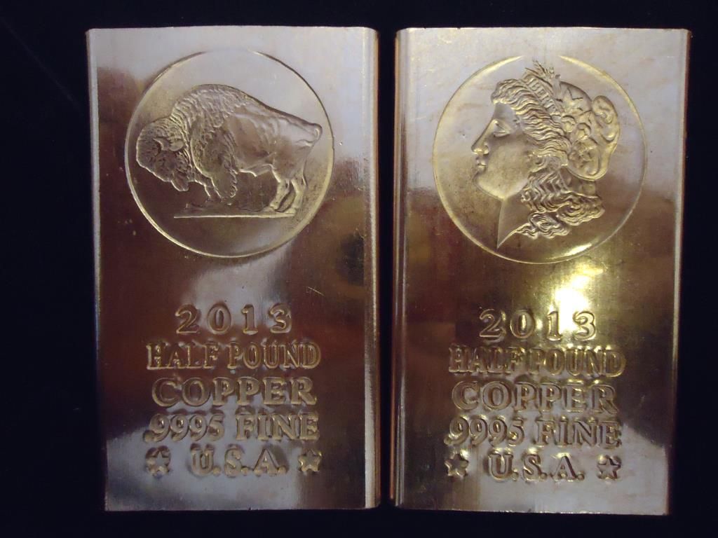 2 HALF POUND COPPER BARS (BUFFALO & MORGAN)