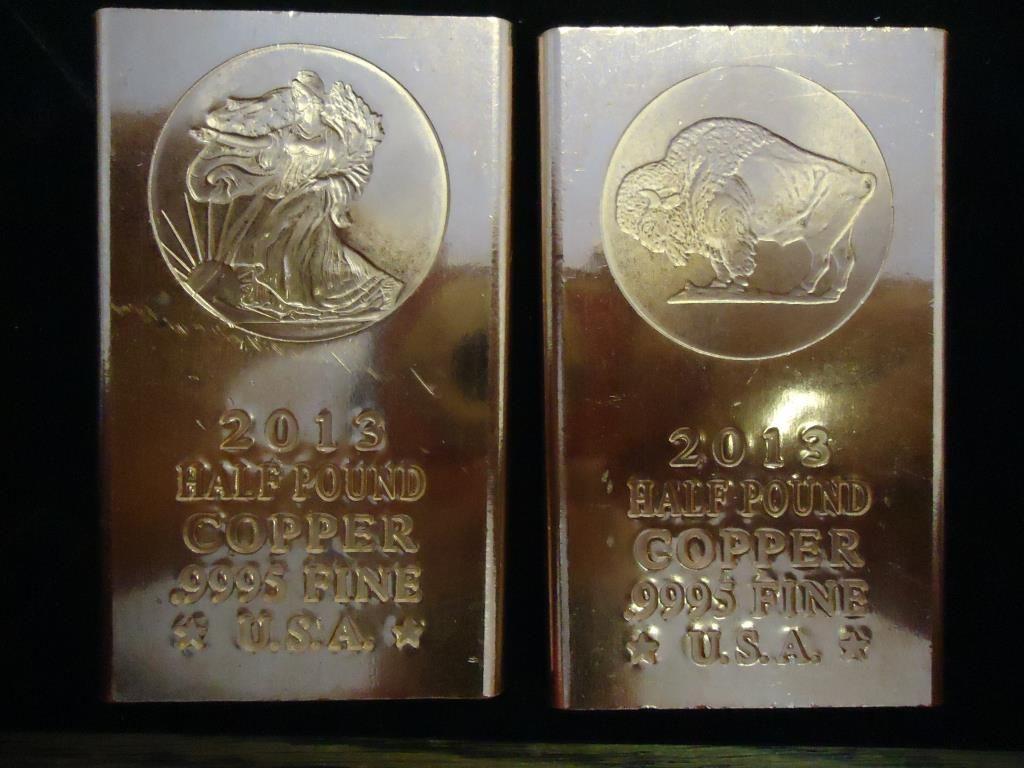 2 HALF POUND COPPER BARS ( WLH & BUFFALO)