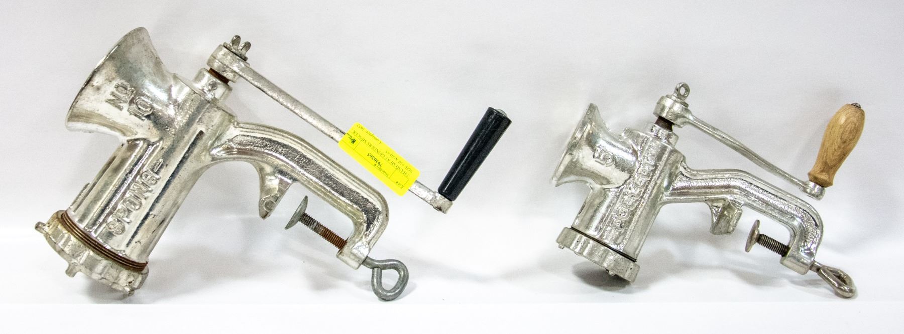 2 HAND MEAT GRINDERS MINCER, SIZE #10 AND #5