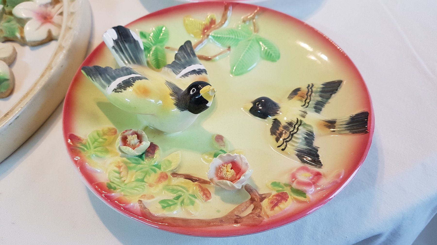 2 HANGING BIRD PLATES 7", 1 CHALKWARE 12"