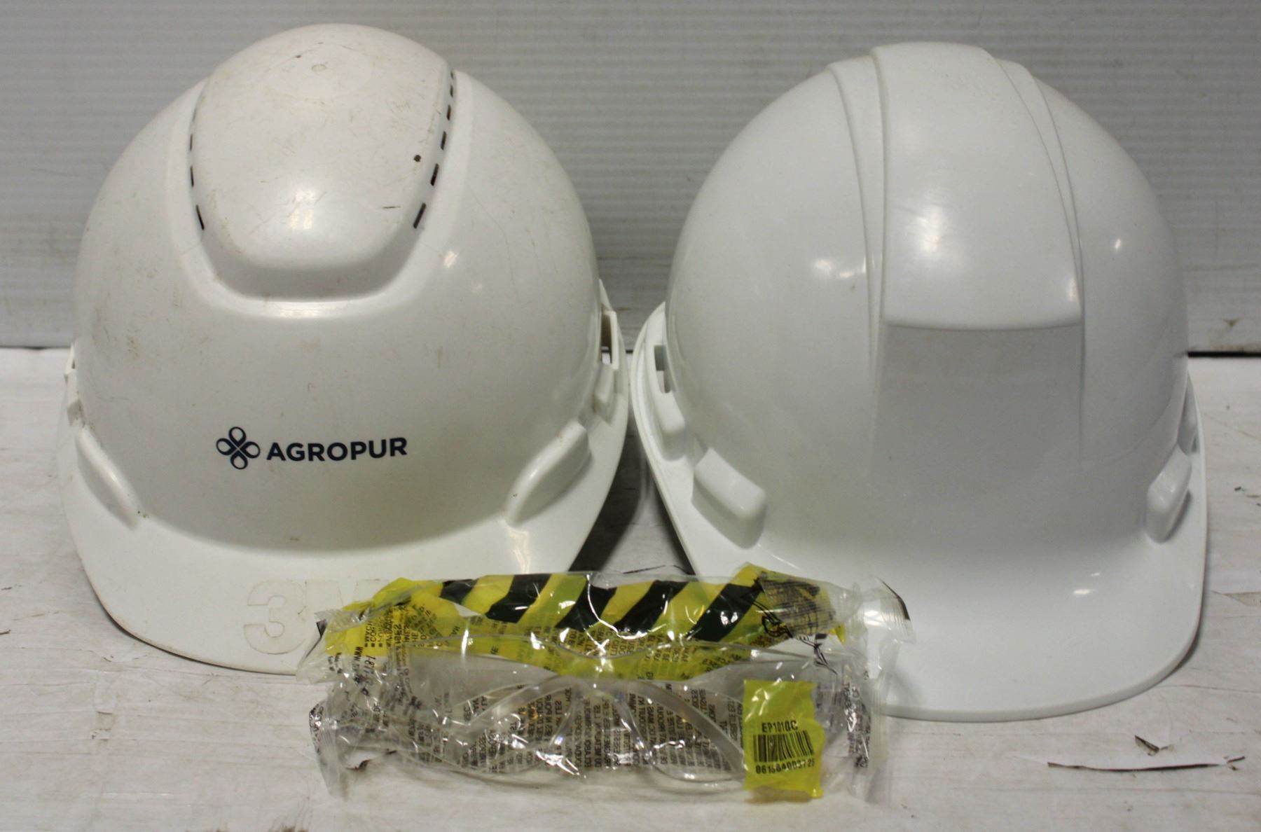 2 HARD HATS WITH NEW SAFETY GLASSES
