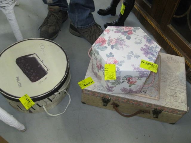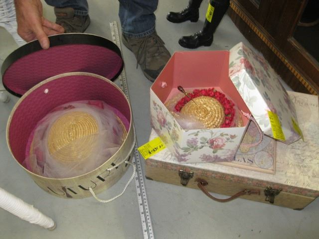 2 HAT BOXES W/HATS & A SMALL DECORATIVE BOX