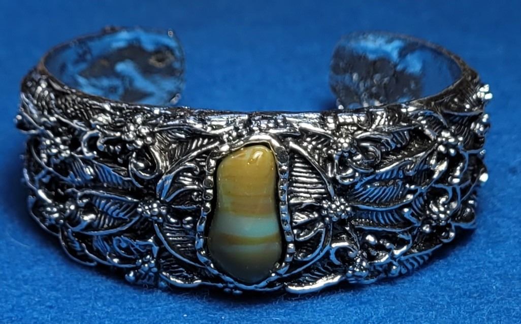 BRACELET WITH BANDED TURQUOISE ACCENT STONE. JEWELERY