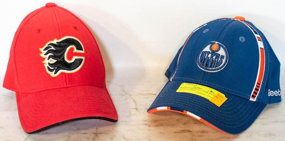 (2) HOCKEY BASEBALL CAPS (KIDS) OILERS & FLAMES