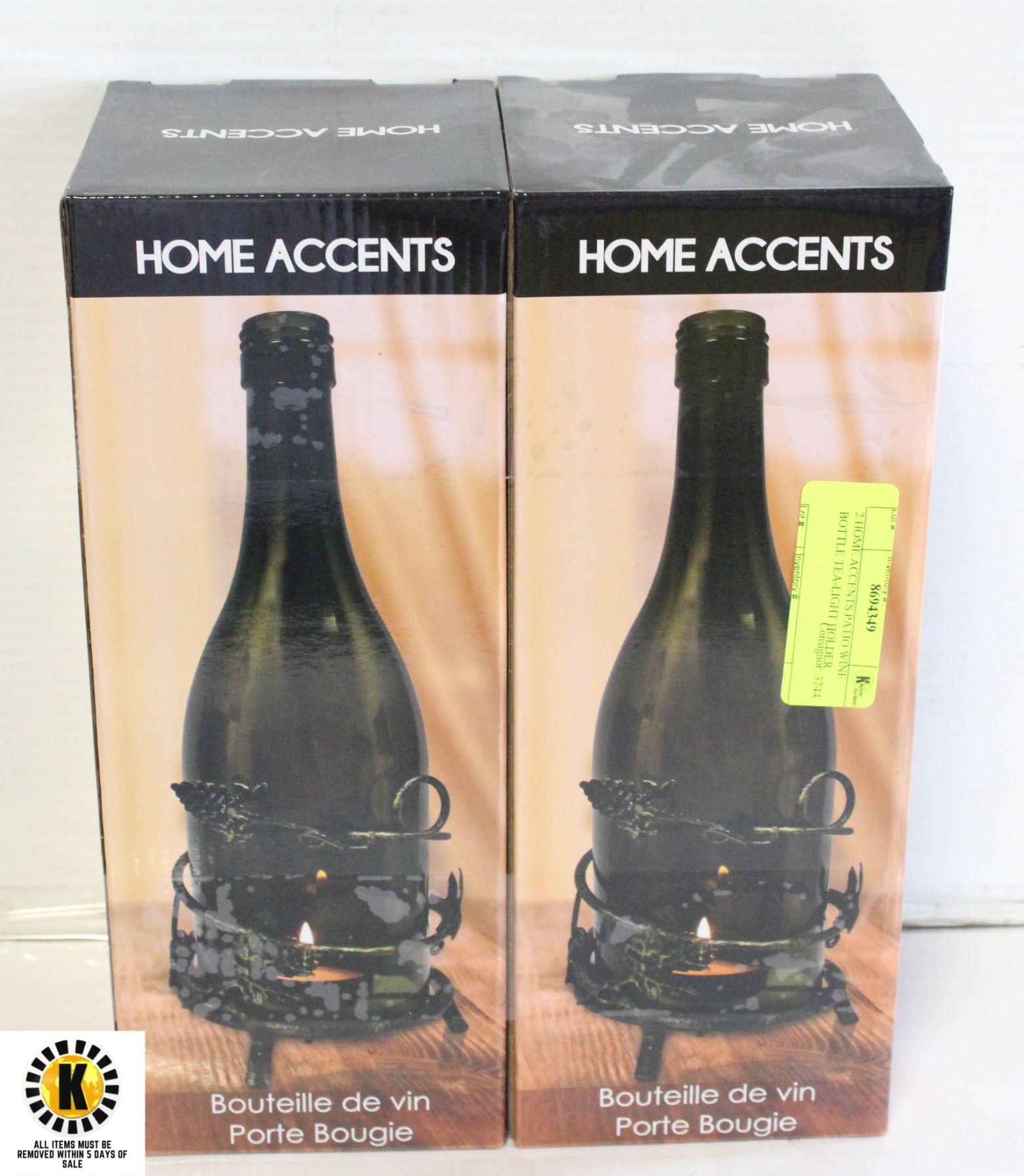 2 HOME ACCENTS PATIO WINE BOTTLE TEA-LIGHT HOLDER