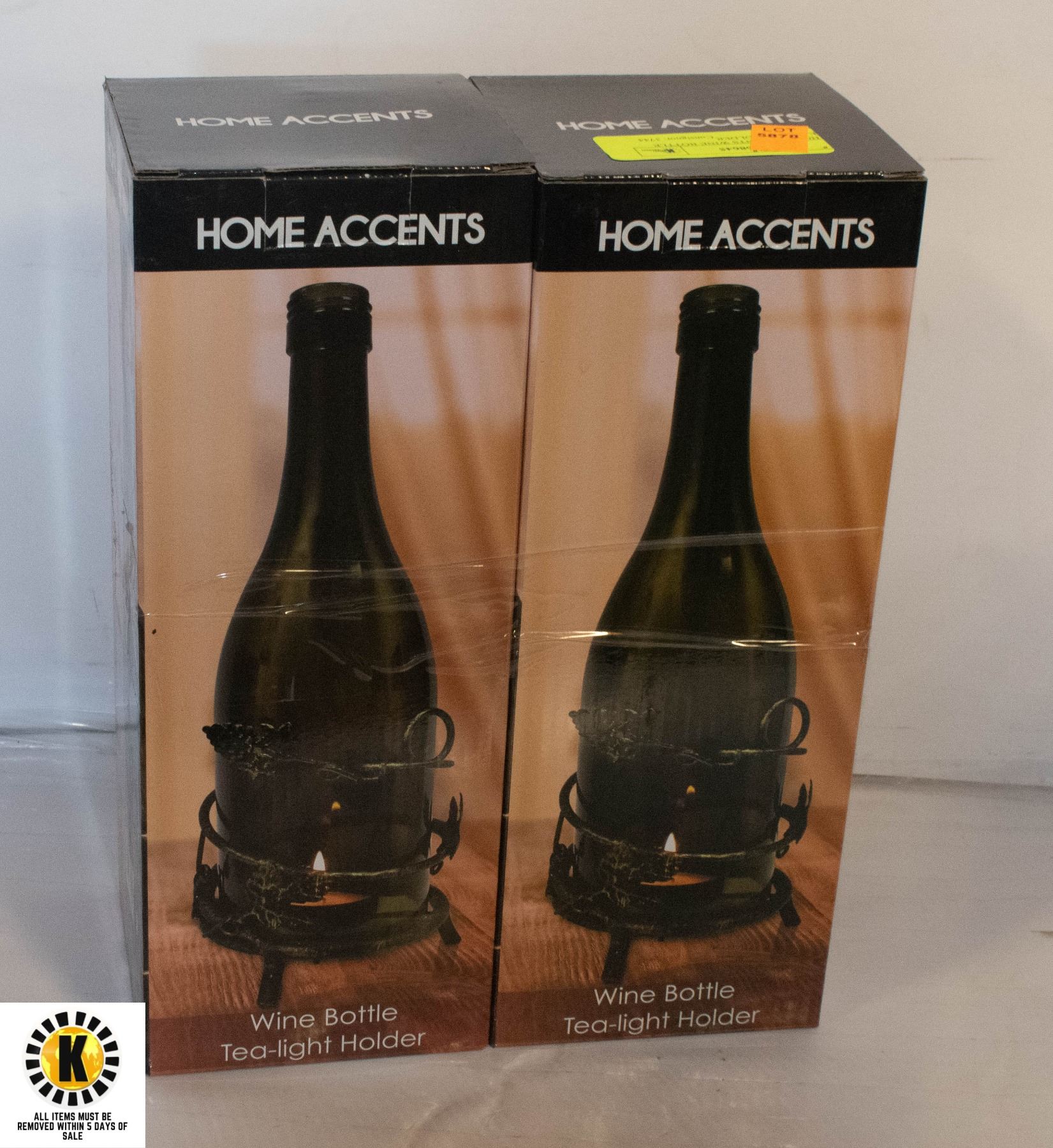 2 HOME ACCENTS WINE BOTTLE TEA-LIGHT HOLDER