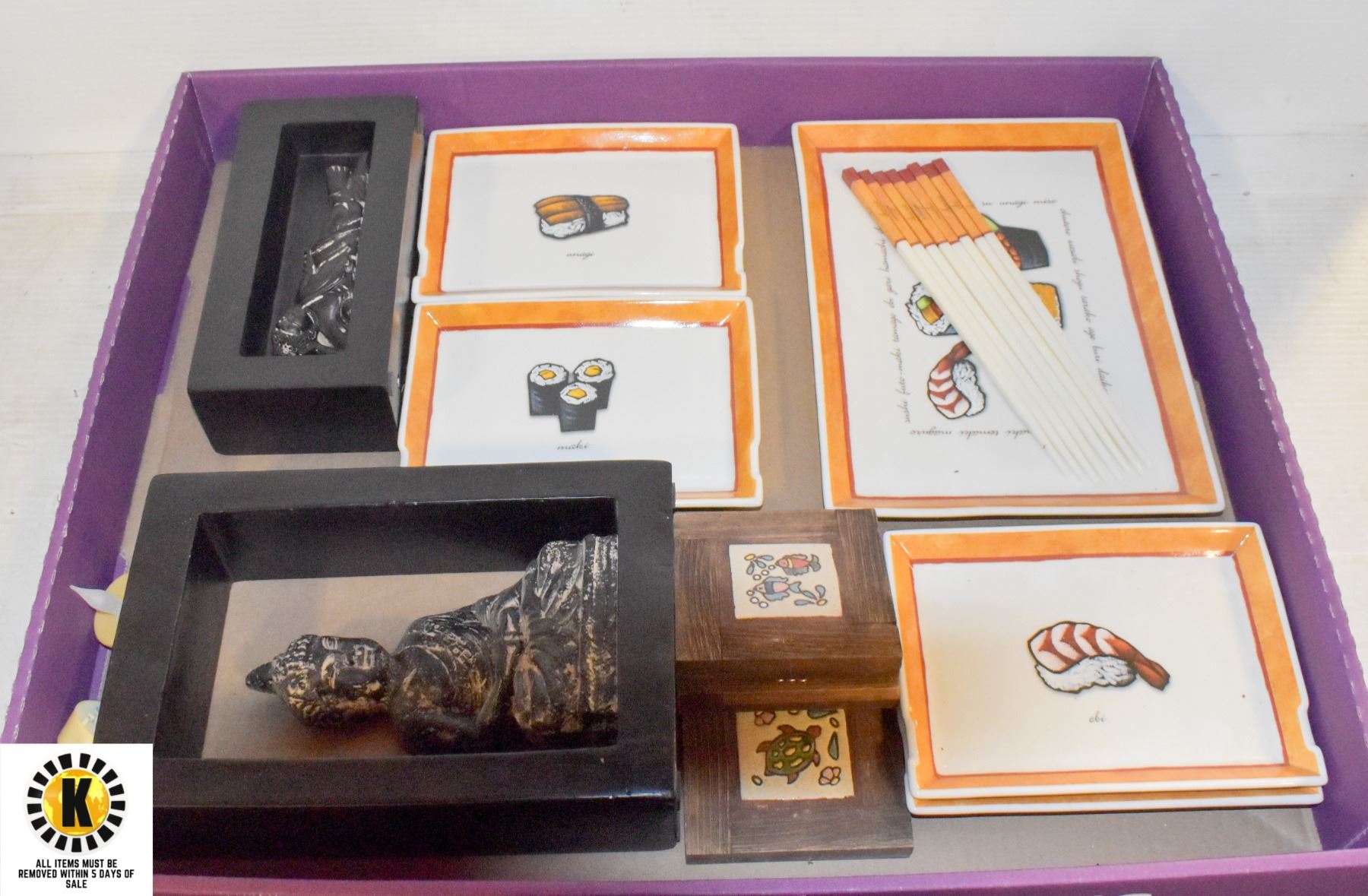 2 HOME DECOR BUDDHA,ASIAN PLATES+TRAY,CHOPSTICKS