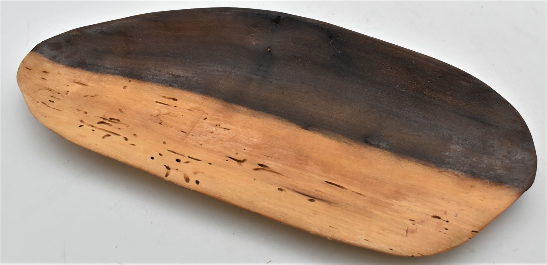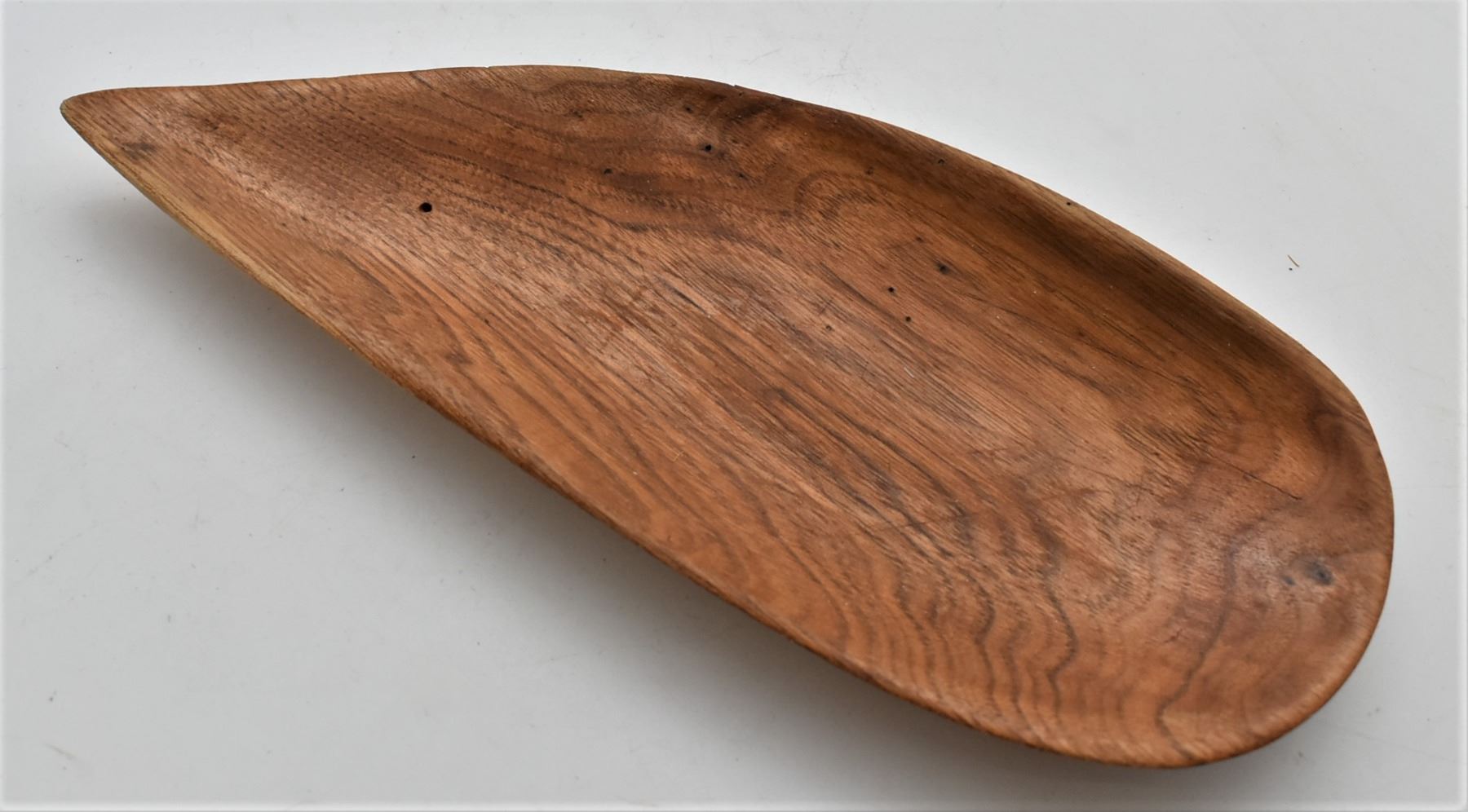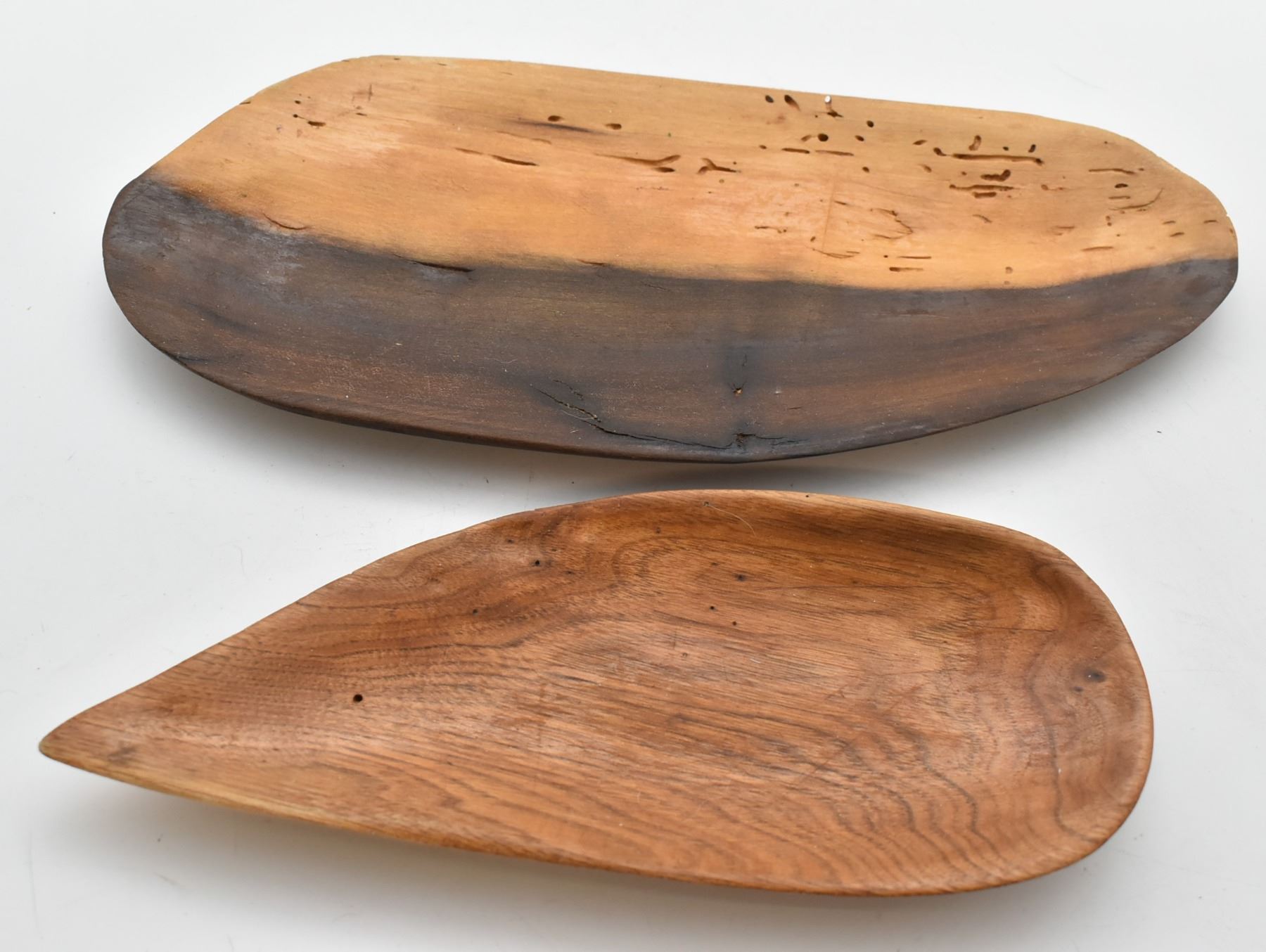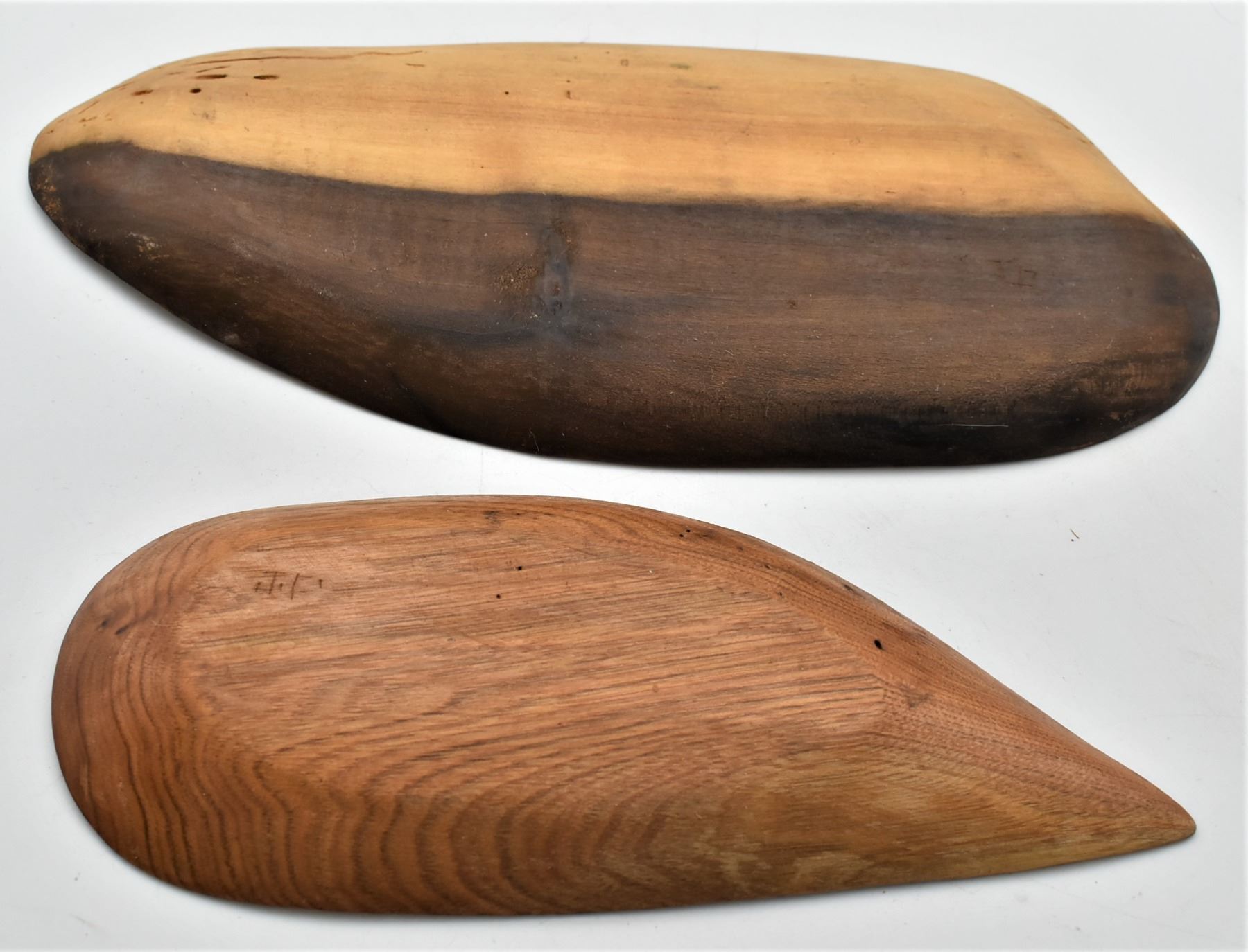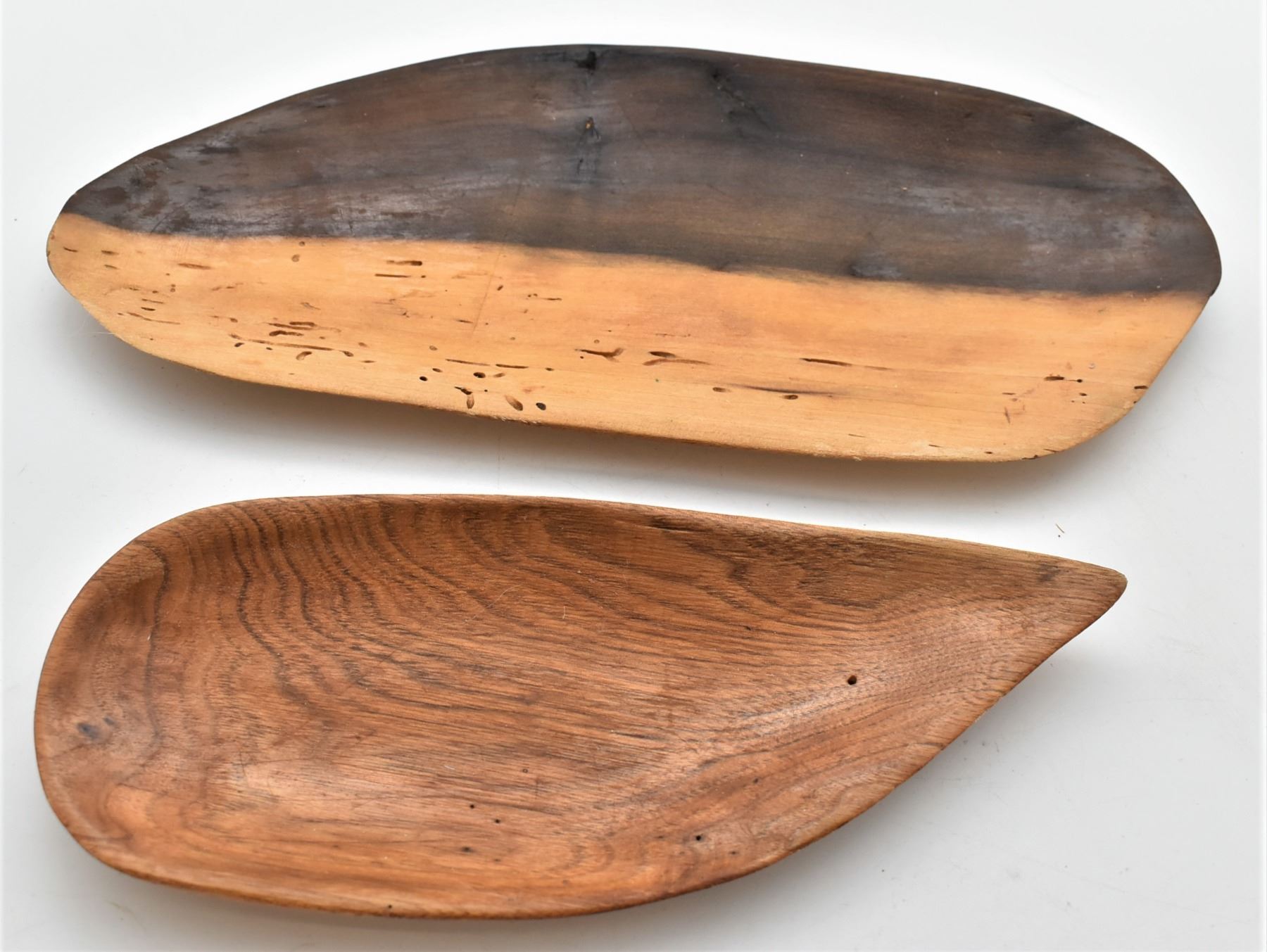 2 Hand Crafted Wooden Trays by John Campbell Folk Art School, longest measures 12''L x 5.25''W, located in Brasstown, North Carolina